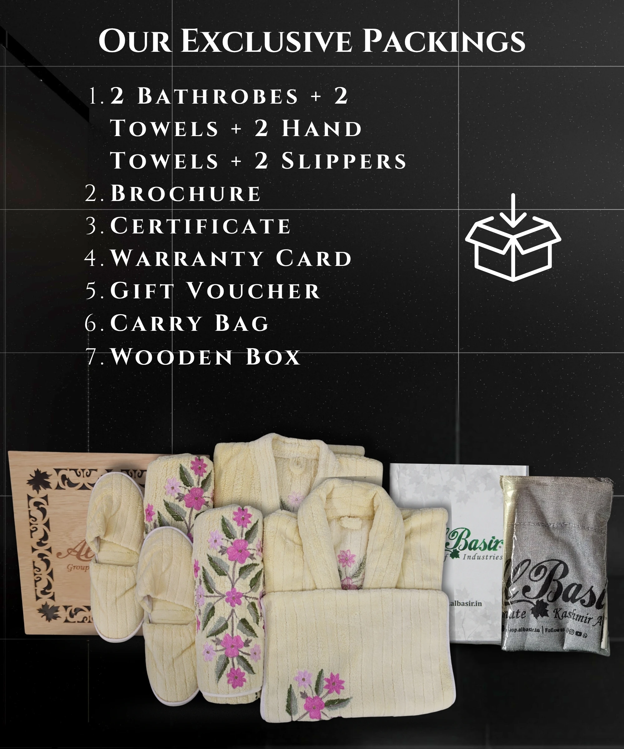 Wrap Yourself In Elegance And Comfort With Our Women’s Aari Work Bathrobe, Where Traditional Craftsmanship Meets Everyday Luxury. Beautifully Adorned With Intricate Aari Embroidery, This Robe Adds A Refined, Artisanal Touch To Your Loungewear Collection. Each Stitch Reflects The Finesse Of Age-Old Embroidery Techniques, Offering A Unique Blend Of Style And Heritage.Crafted From High-Quality Cotton Or Terry Fabric, The Robe Feels Soft Against The Skin While Keeping You Warm And Cozy—Perfect For Post-Shower Relaxation Or A Laid-Back Evening At Home. The Belted Waist Ensures A Secure And Flattering Fit, Allowing You To Adjust It To Your Comfort. Designed Without Pockets For A Sleek And Minimal Silhouette, This Robe Is Both Stylish And Functional In Its Simplicity.Whether You’re Starting Your Day Or Winding Down, The Women’s Aari Work Bathrobe Is A Graceful Companion That Brings A Touch Of Traditional Artistry To Modern Comfort.