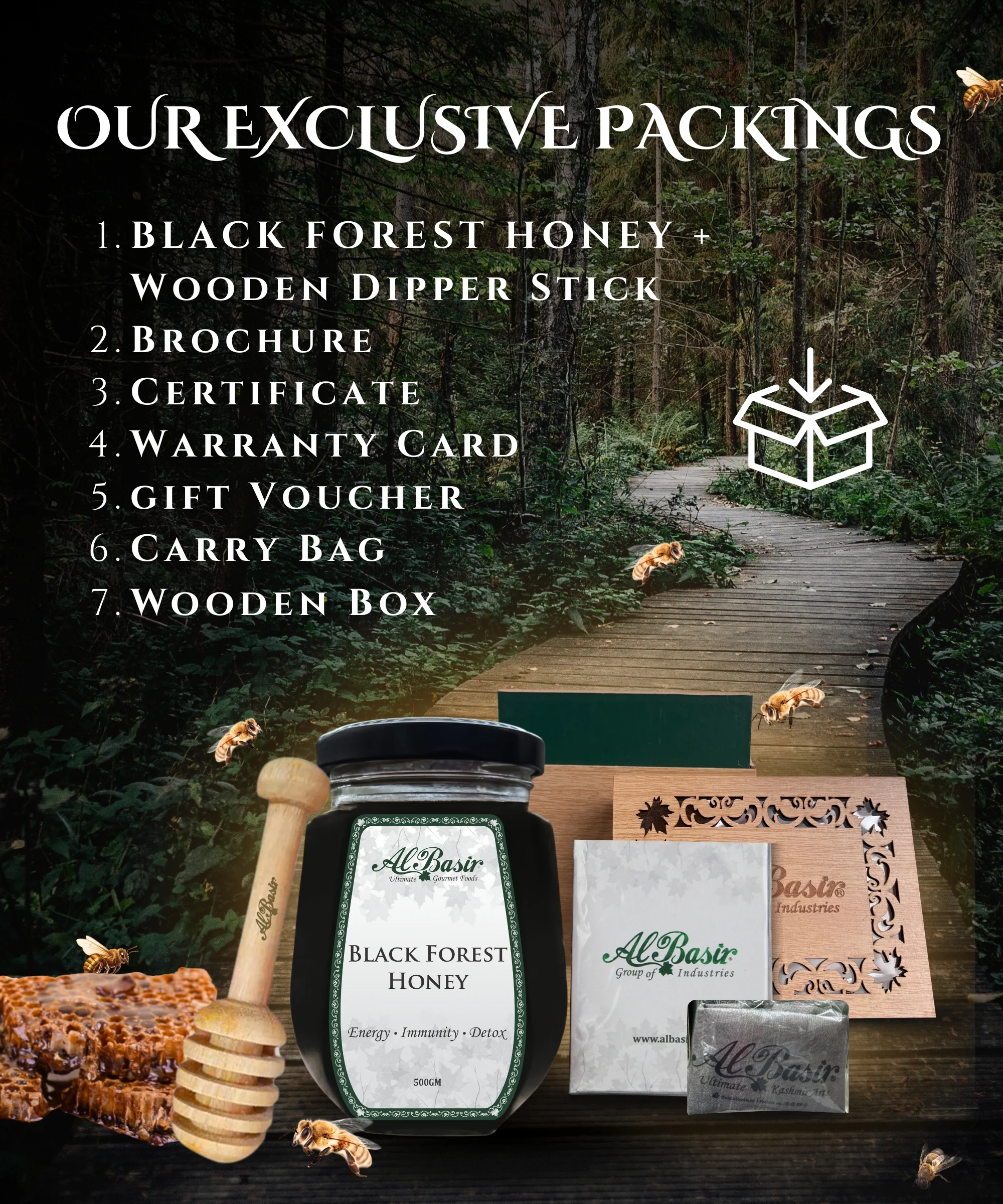 Albasir Black Forest Honey is a unique and powerful gift from deep, wild forests—crafted by bees that collect nectar from wildflowers, tree saps, and medicinal forest resins. Rich, dark, and intense in flavor, this raw and unprocessed honey is loaded with nature’s best immunity-boosting and energizing compounds.