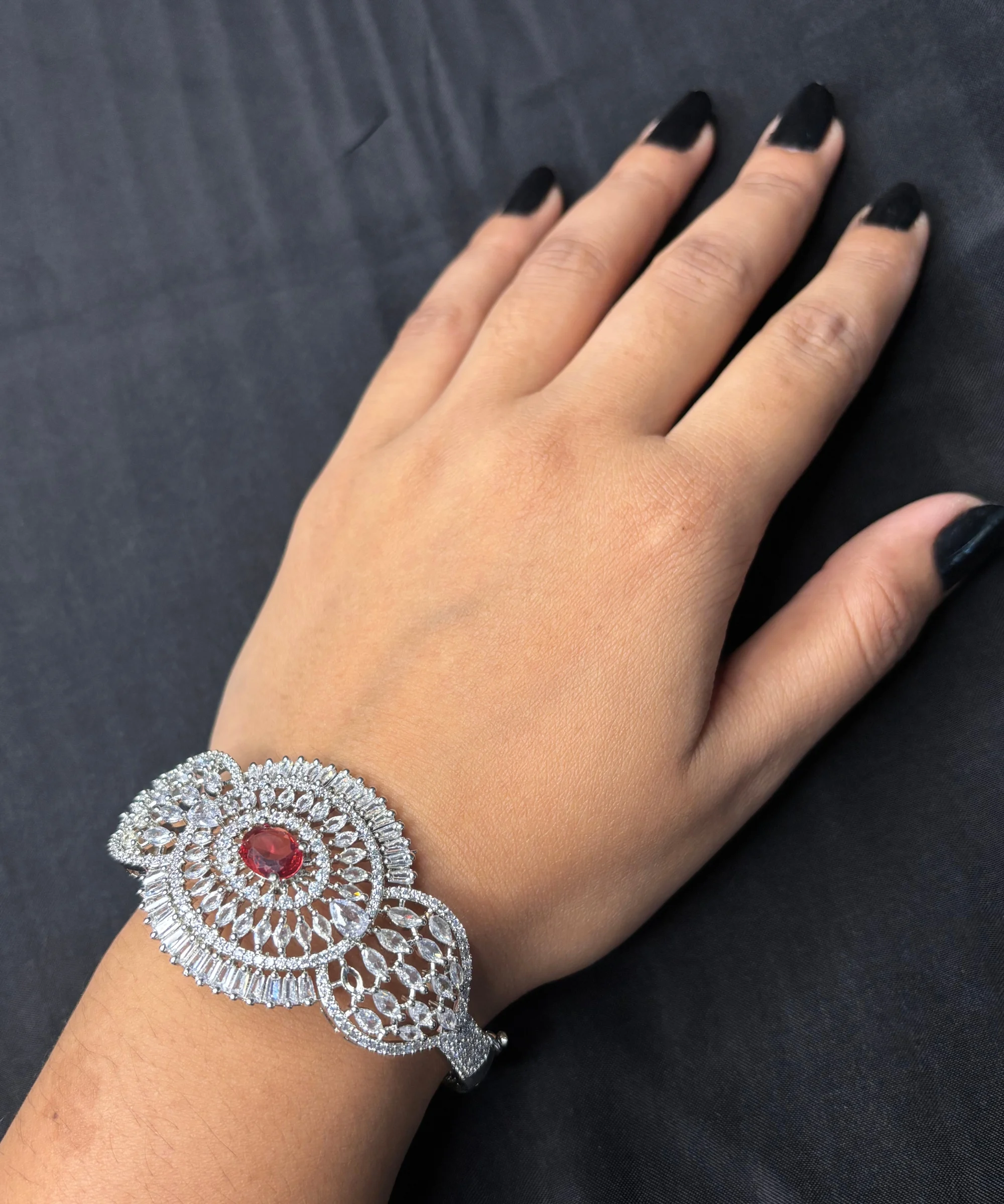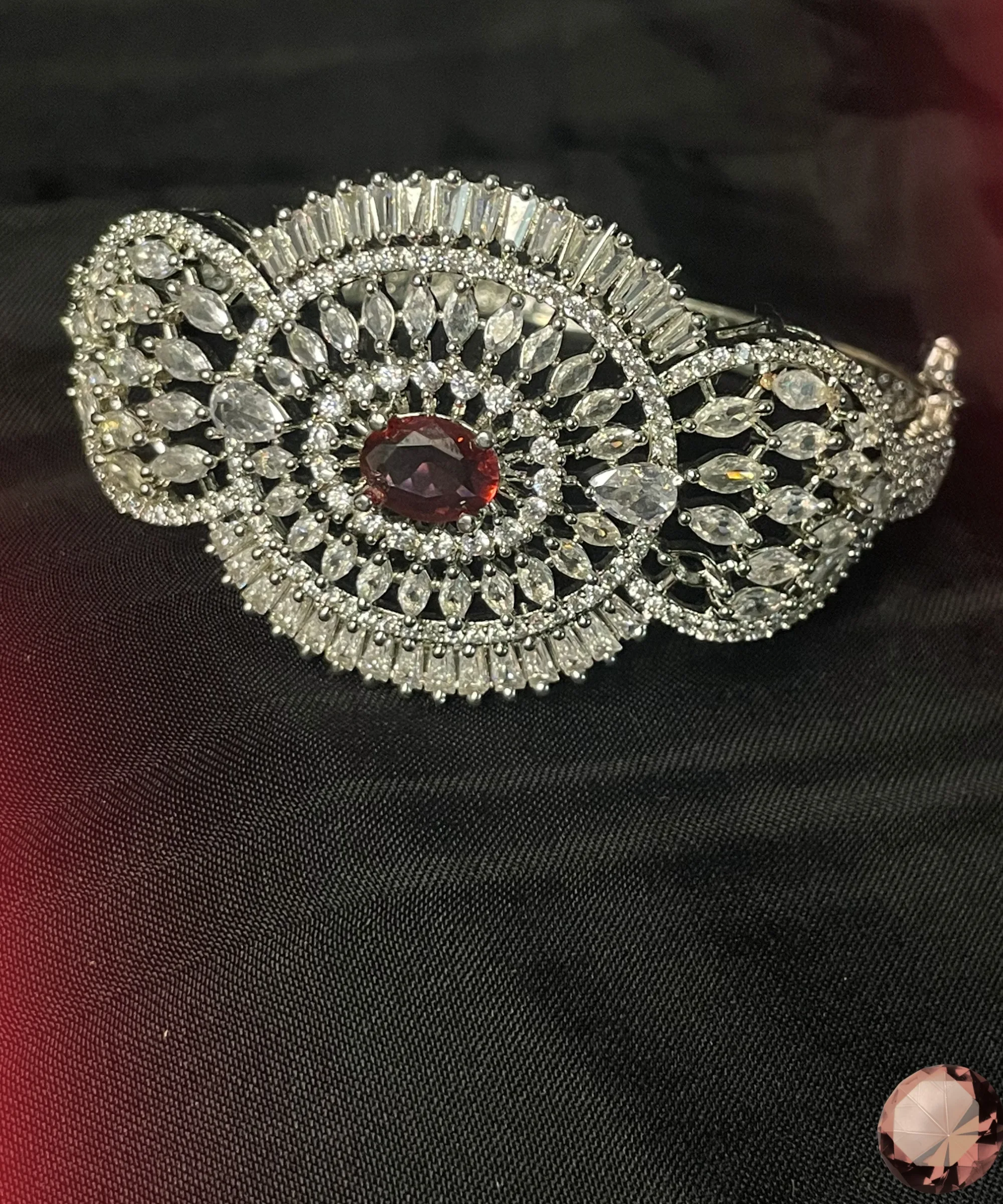 Discover the timeless charm of the Bracelet Ruby Gem by Albasir, where romantic elegance meets artisanal mastery. The Albasir Ruby Gem Bracelet is a celebration of femininity, featuring a fresh and graceful floral design inspired by nature’s soft beauty. Each Albasir bracelet showcases delicate ruby stones shaped like petals and buds, creating a romantic and sophisticated appeal perfect for special moments. Handcrafted by expert artisans, the Albasir Bracelet Ruby Gem is an authentic piece finished in a stunning silver tone, elevating its luxurious essence. With crystals delicately surrounding the ruby centerpiece, the Albasir bracelet sparkles with refined brilliance, enhancing its visual appeal. The radiant and modern design is a signature of Albasir, blending tradition with contemporary style. Whether you’re celebrating love, elegance, or simply your unique style, the Albasir Bracelet Ruby Gem is a perfect match. Made from premium metal, the Albasir bracelet offers both durability and a stylish look for all your special occasions. Choose Albasir to express romance, grace, and authenticity in every detail. Let Albasir adorn your wrist with elegance, and experience why Albasir is the name women trust for beauty, craftsmanship, and timeless design. With Albasir, every bracelet tells a story—your story.