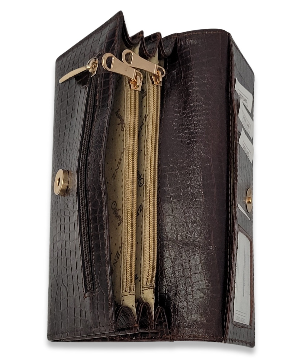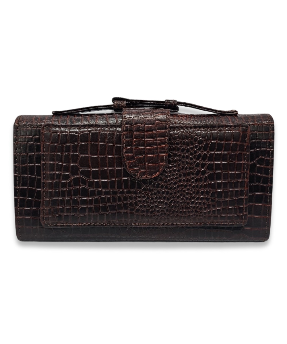 Albasir’s Croco Bifold Clutch in a rich brown color blends modern appeal with everyday functionality. Crafted from the finest quality hand-crafted leather, this clutch showcases a stylish croco texture that adds a bold and luxurious touch. It features a secure magnetic closure to keep your essentials safe, along with multiple card slots and two zippered pockets—perfect for organizing your cash, cards, and small belongings. Designed for both casual outings and formal occasions, this versatile clutch is compact, elegant, and highly functional. The handcrafted finish highlights attention to detail and premium craftsmanship, making it a timeless accessory that pairs effortlessly with both traditional and contemporary looks. A perfect choice for those who value style, practicality, and refined design.
