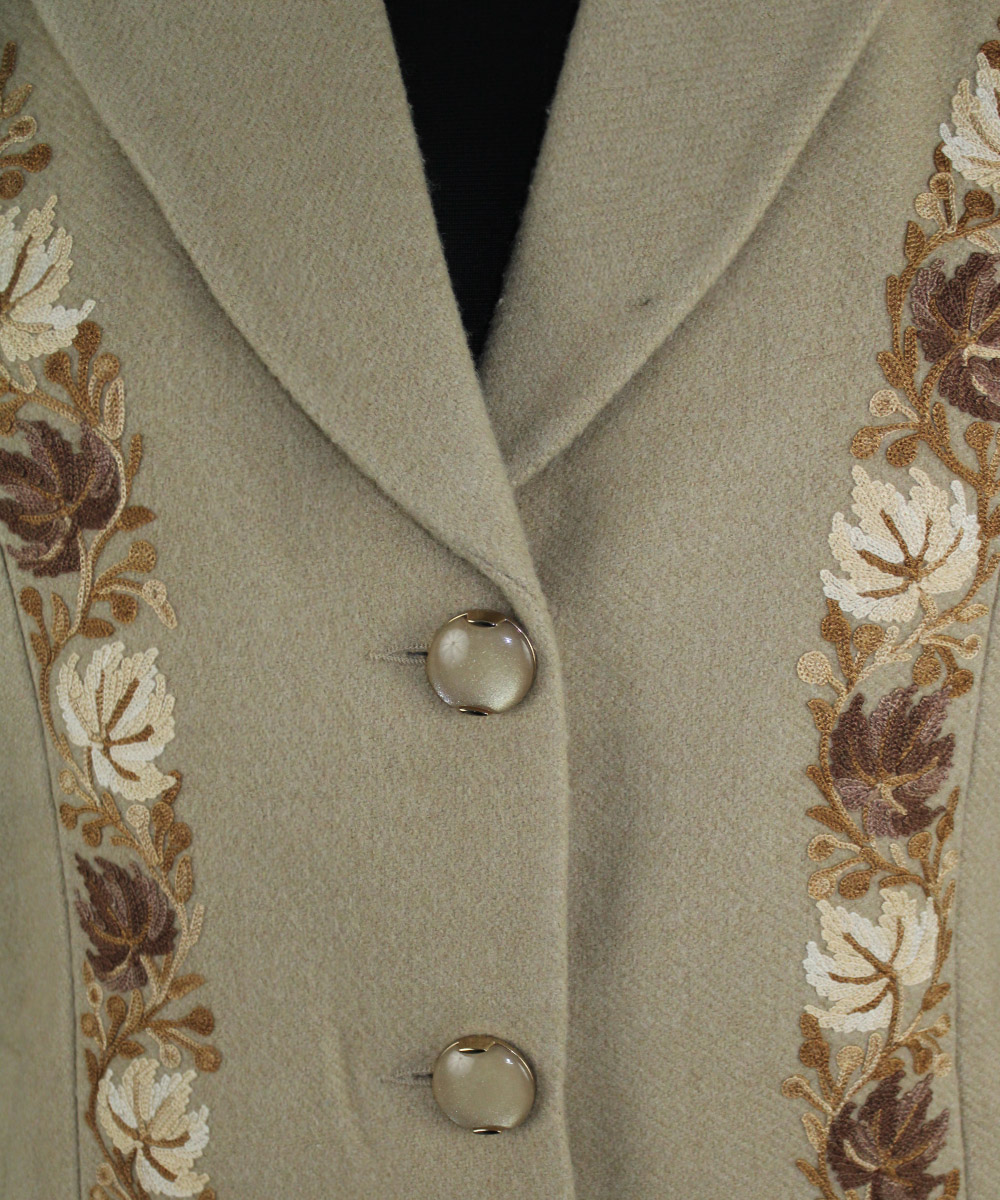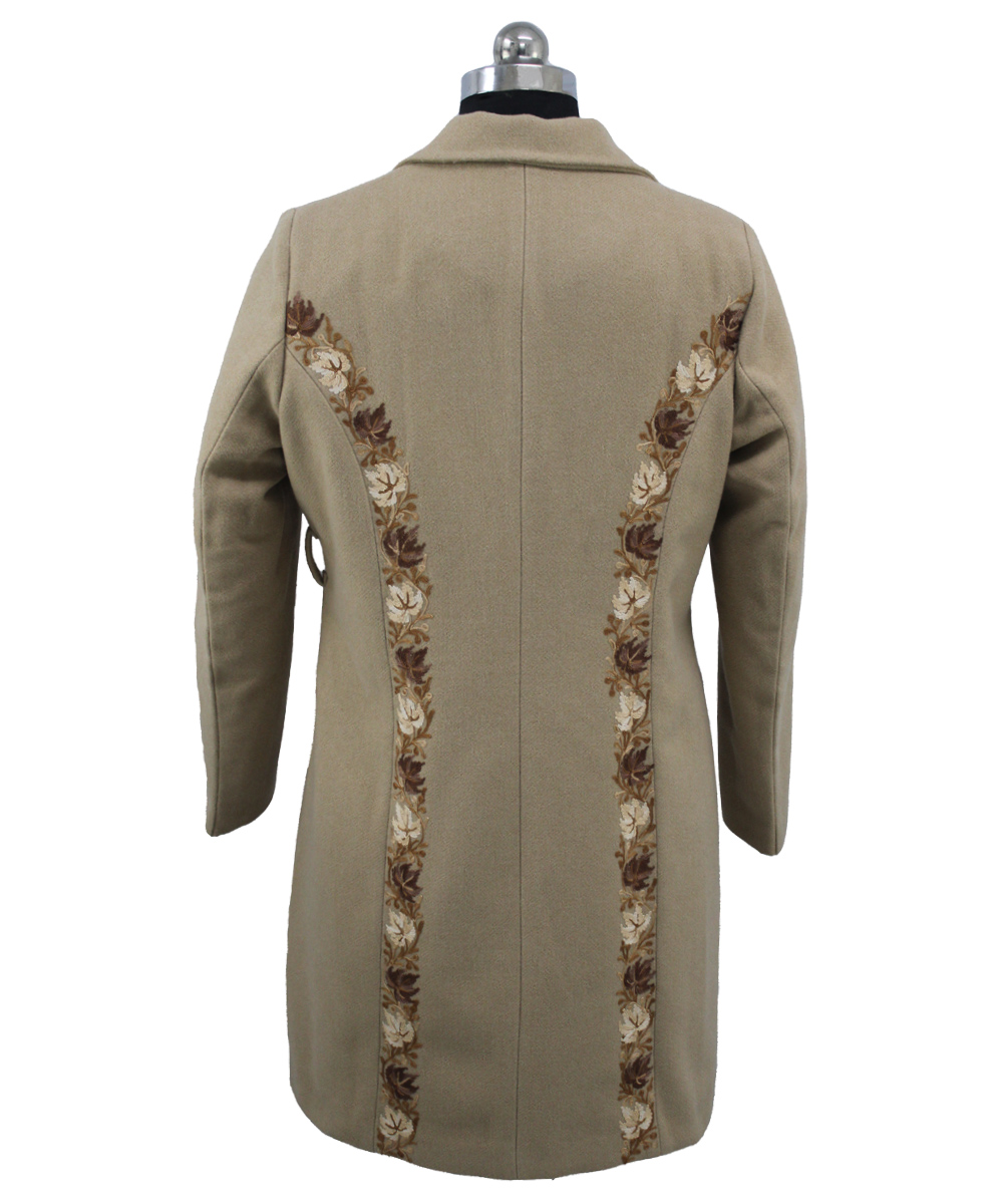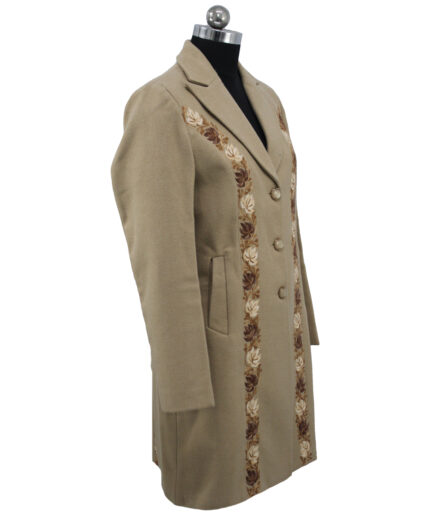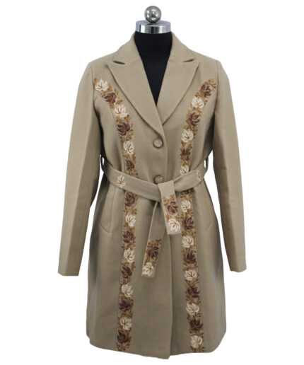 Elevate your winter wardrobe with Albasir’s refined Aari Long Coat in a timeless beige shade. Crafted from premium-quality wool fabric, this coat promises exceptional warmth and comfort for the colder months. The delicate Aari embroidery on both the front and back adds a unique, artistic touch, showcasing intricate craftsmanship and cultural elegance. A sophisticated border design frames the coat beautifully, enhancing its classic appeal. Functional details include two pockets, elegant buttons, and a waist belt that cinches for a flattering silhouette. Perfectly blending tradition with modern style, this coat offers both authenticity and contemporary charm. Ideal for formal or casual wear, it’s a versatile winter essential designed to keep you warm in style.