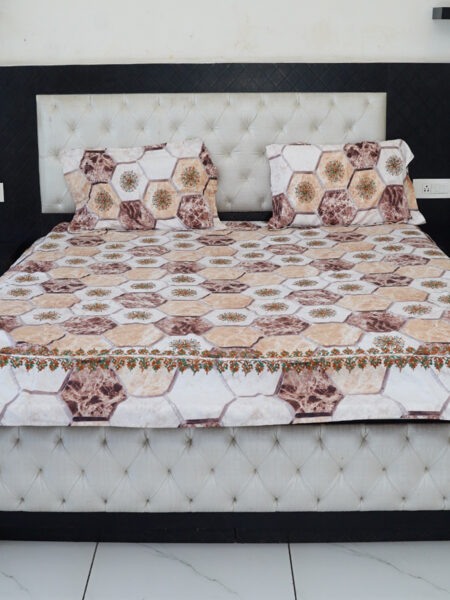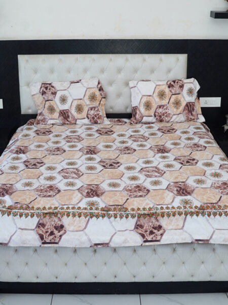 Indulge in luxury and refinement with our exclusive collection of designer bedspreads, meticulously handcrafted by the skilled artisans of Kashmir. Embodying a fusion of tradition and innovation, our bedspreads feature an eclectic array of designs, ranging from contemporary patterns to timeless motifs, from delicate floral arrangements to bold geometric shapes, and beyond. Crafted from a rich selection of fabrics including sumptuous silk, soft cotton, durable dosuti, plush velvet, opulent brocade, and cozy wool, each bedspread promises not only unparalleled comfort but also an exquisite aesthetic. Every piece in our collection is a testament to the artisan’s mastery, meticulously adorned with intricate details and vibrant colors that breathe life into every stitch. From the mesmerizing Machine work, aari work to the delicate from the shimmering zari embellishments, each element is executed with precision and care, resulting in a harmonious symphony of texture and hue. Transform your bedroom into a sanctuary of elegance and charm with these captivating bedspreads, each one showcasing exceptional craftsmanship and adding a touch of sophistication to your living space. Whether you seek to infuse your room with warmth and coziness or elevate its aesthetic appeal with a touch of opulence, our designer bedspreads are sure to enchant and inspire, inviting you to embrace the timeless allure of Kashmiri artistry.