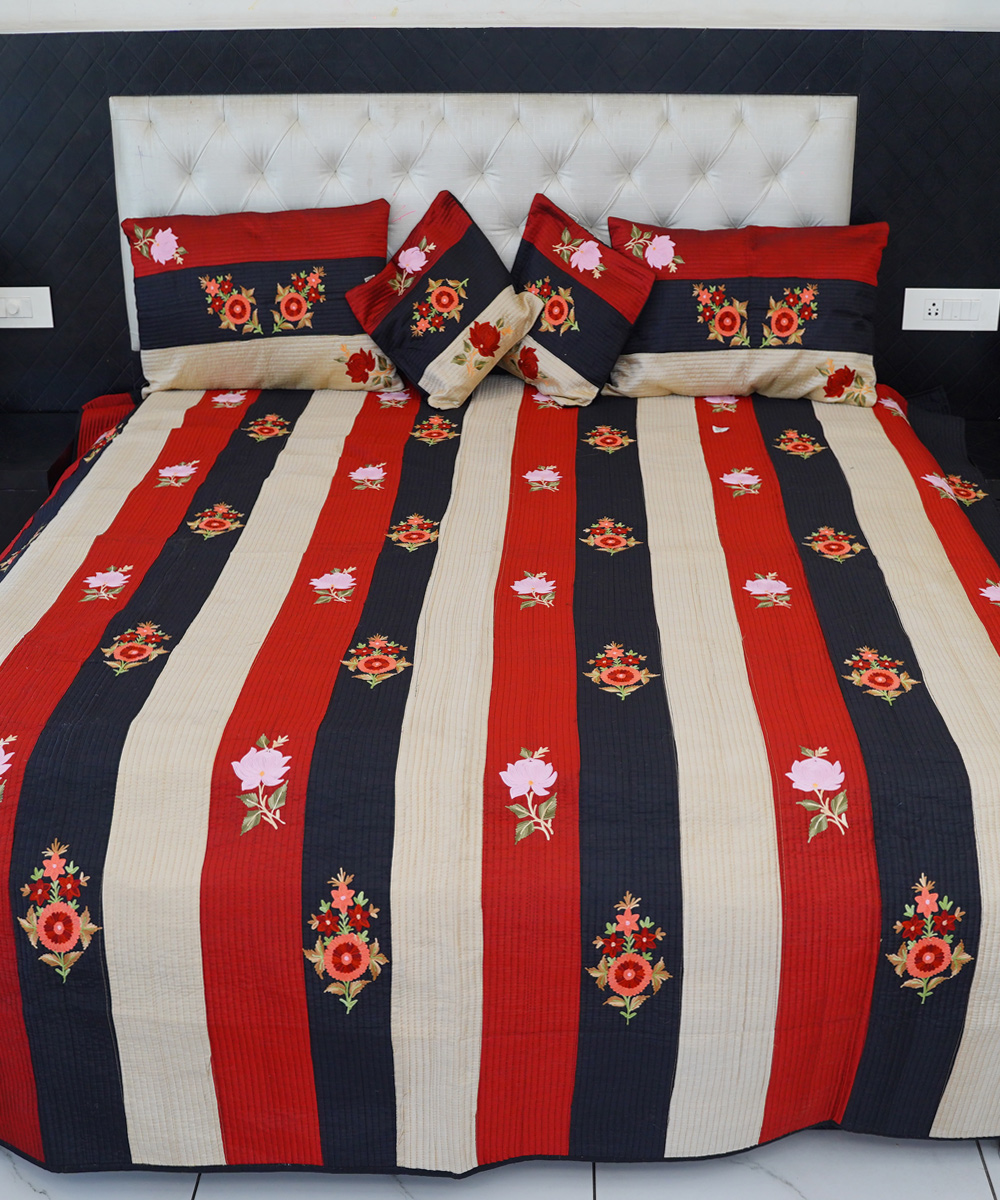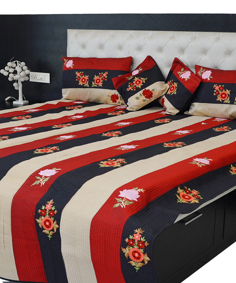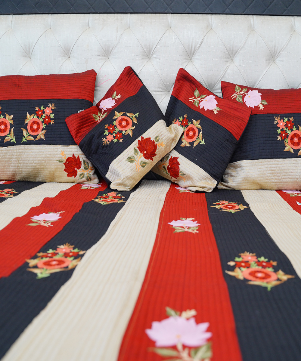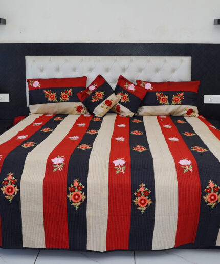 Add a vibrant touch of elegance to your bedroom with the Albasir Designer Bed Cover Set, featuring a stunning multi-color combination that instantly uplifts your space. Expertly crafted from fine silk, the bed cover boasts rich texture and a luxurious feel, perfect for special occasions or everyday opulence. The intricate Aari embroidery reflects traditional craftsmanship, blending ethnic charm with a refined, designer aesthetic. This beautifully coordinated set includes 1 bed cover and 4 stylish cushion covers, each designed with sophistication and attention to detail. Whether you’re revamping your room or gifting someone special, this set brings warmth, grace, and cultural artistry. Choose Albasir for timeless home décor that merges tradition with contemporary elegance.