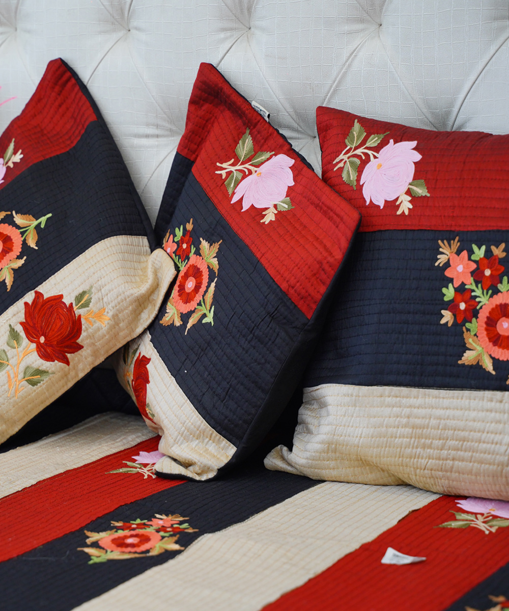• Crafted From Fine Silk, The Bed Cover Set Showcases Aari Work.