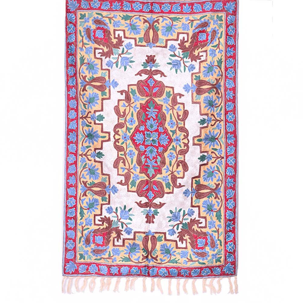 We present our exclusive collection of designer accent decorative rugs and wall hangings, meticulously crafted by skilled artisans from Kashmir. Each piece in this exquisite collection showcases a fusion of traditional artistry and contemporary design, offering a diverse range of styles to suit every taste. Our artisans draw inspiration from Kashmir’s rich cultural heritage, infusing their creations with vibrant motifs and patterns that reflect the region’s artistic legacy. From modern and abstract designs to timeless floral, geometrical, landscape, and pictorial motifs, our collection boasts a captivating array of options to elevate any space.Crafted using premium fabrics such as colored silk, cotton, dosuti, velvet, brocade, and wool, our rugs and wall hangings embody luxury and sophistication. The meticulous attention to detail is evident in every stitch, with techniques including crewel-work, needlework, and appliqué work adding depth and texture to each piece.Each rug and wall hanging is more than just a home accessory—it’s a masterpiece that brings warmth, elegance, and character to any room. Whether you’re looking to make a bold statement or add a subtle touch of sophistication, our collection promises to transform your living space into a haven of style and beauty. Experience the unparalleled craftsmanship and timeless elegance of our Kashmiri artisanal rugs and wall hangings today.