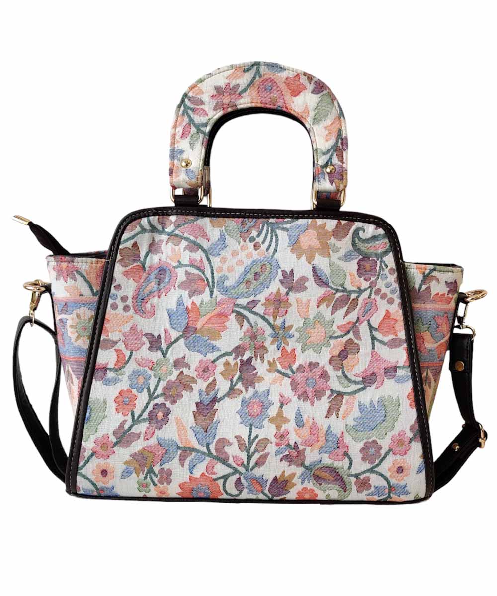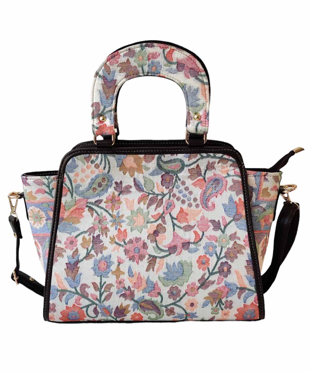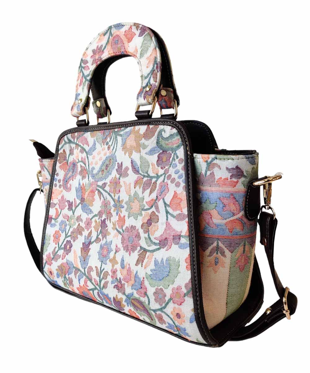 Add a touch of refined grace to your ensemble with Albasir’s Kani Handbag in elegant white. This beautifully crafted handbag offers an authentic look, combining tradition with modern sophistication. Adorned with intricate Kani weave inspired by age-old Kashmiri artistry, it showcases delicate floral patterns that blend classic beauty with a uniquely artistic flair. The serene white color enhances its versatility, making it suitable for both ethnic and contemporary outfits. Crafted from premium quality leather, the bag features a rich, royal texture with a sleek modern finish. Spacious, stylish, and timeless, this handbag is perfect for special occasions or daily elegance. Elevate your accessory collection with this Kani handbag—a seamless fusion of cultural heritage, premium craftsmanship, and modern charm.