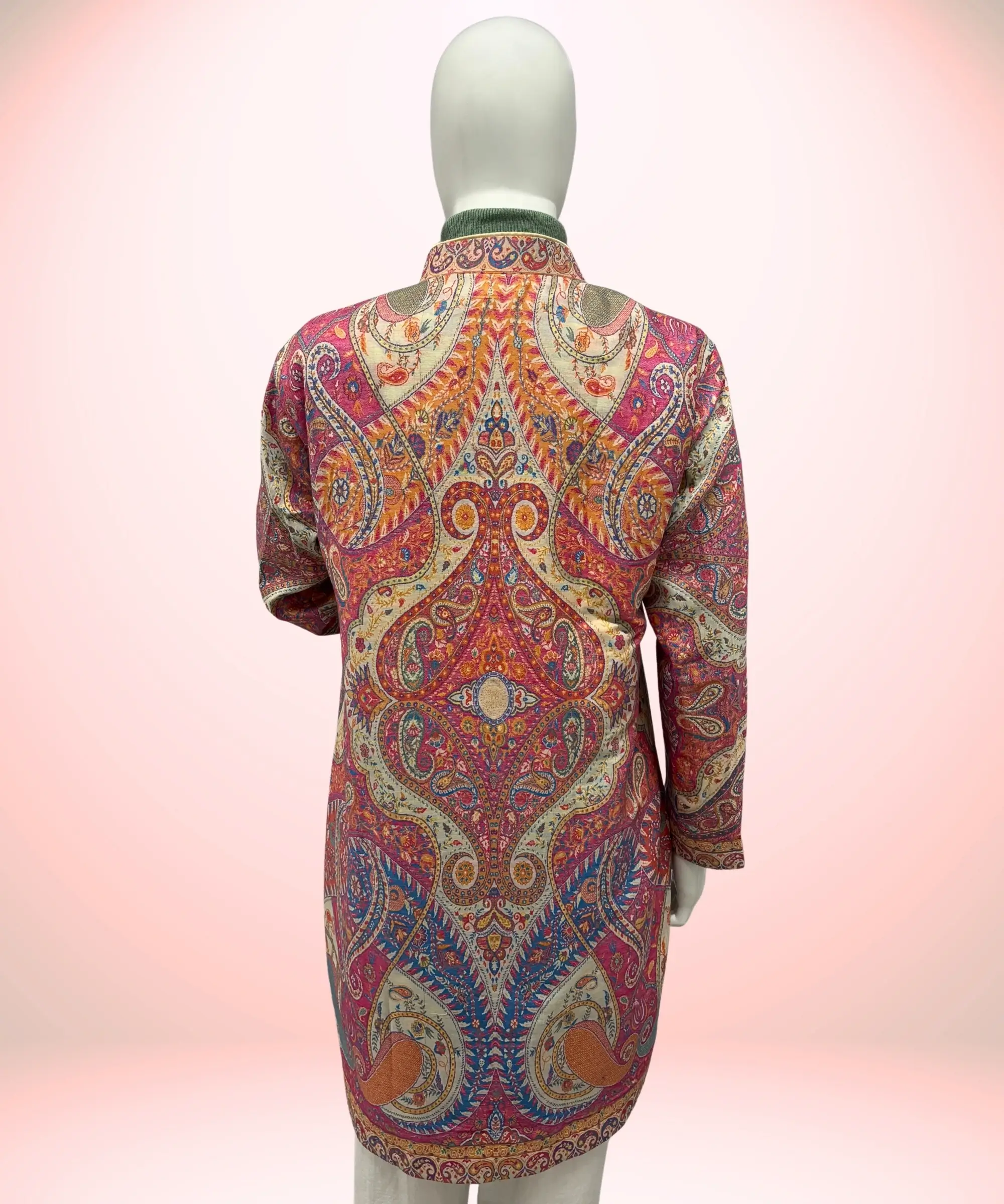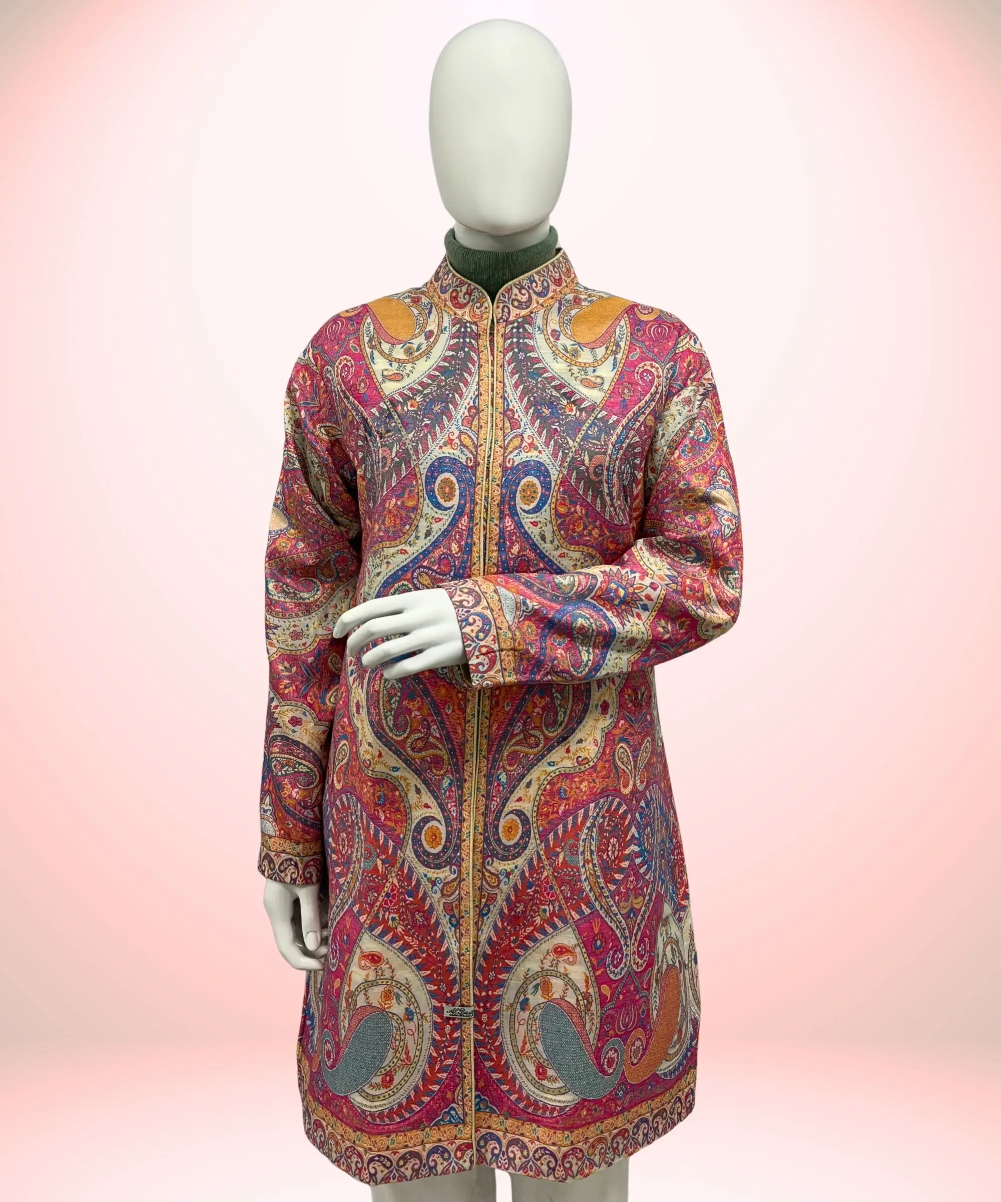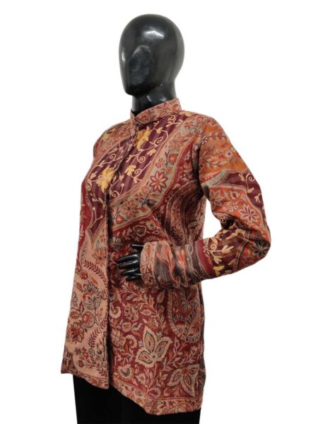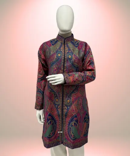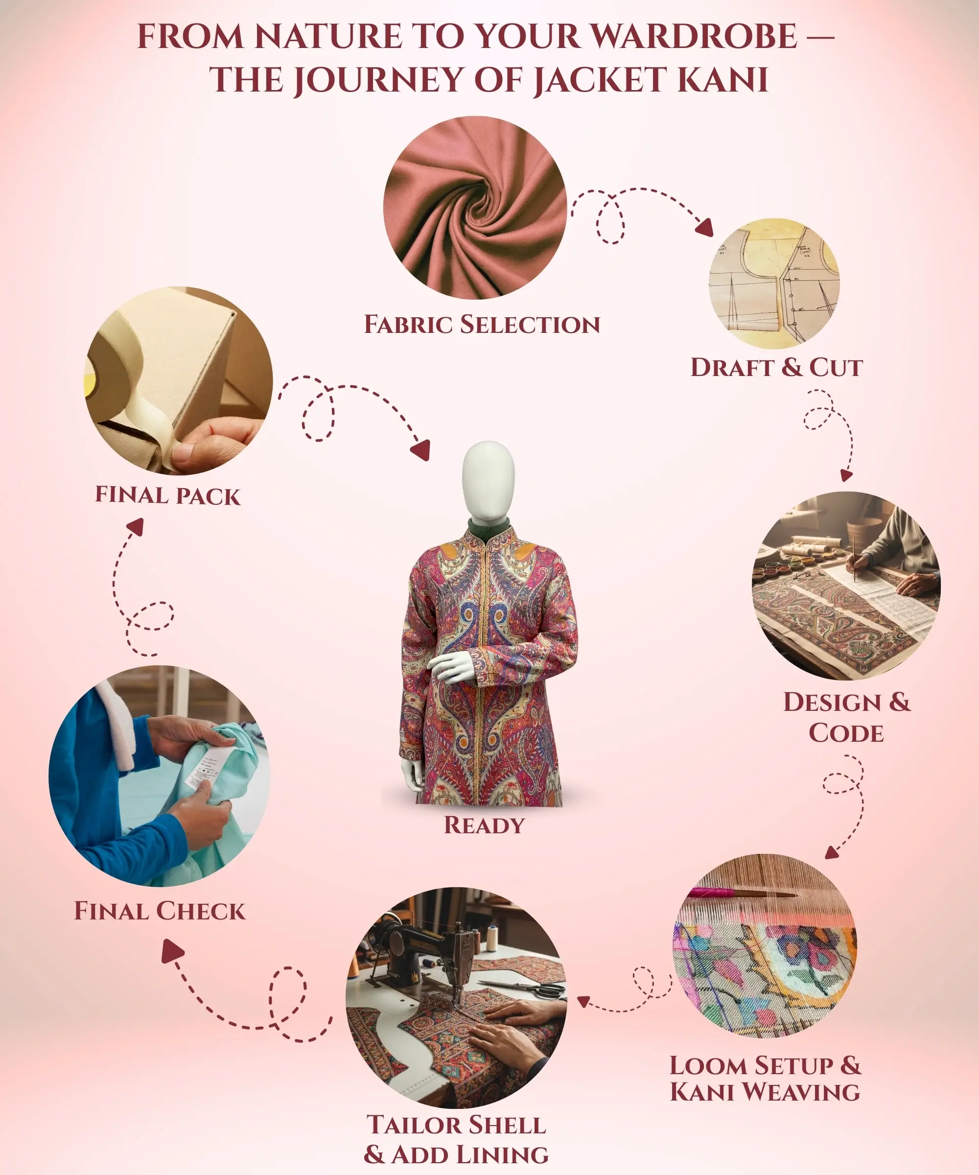 These Kani silk jackets beautifully blend tradition with contemporary elegance, showcasing the timeless artistry of Jamawar design. Each piece is woven with intricate Kani patterns that reflect fine craftsmanship and cultural heritage. Made from premium silk, the jackets offer a smooth, comfortable feel while adding a luxurious sheen to any outfit.Available in striking shades of blue, black, pink, and multi, these jackets make a perfect statement layer for festive, formal, or sophisticated everyday looks. Their detailed motifs, graceful drape, and rich texture make them a standout addition to any wardrobe—celebrating heritage with modern versatility.