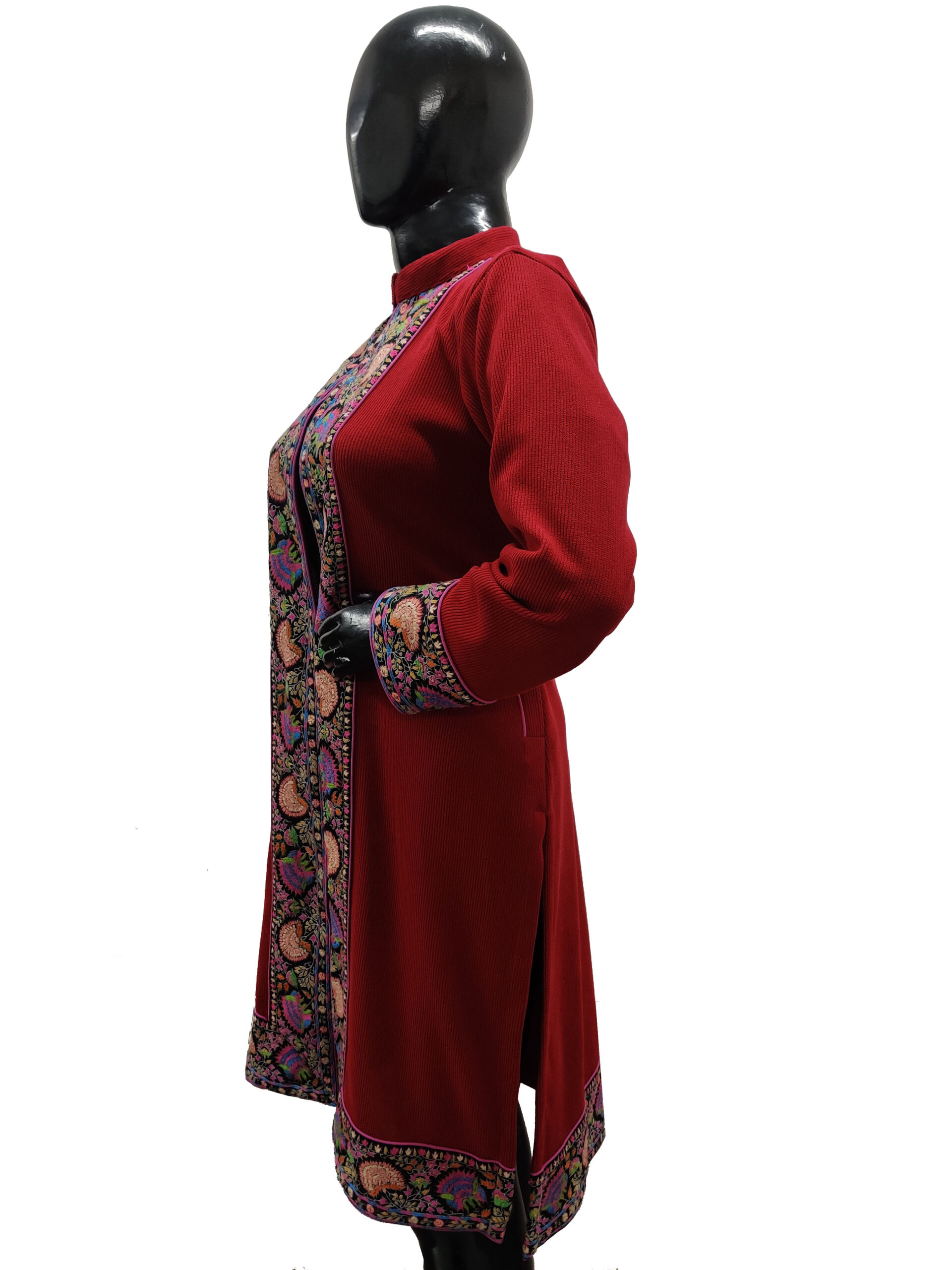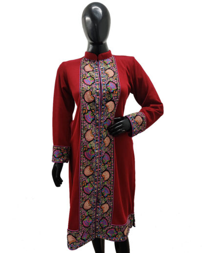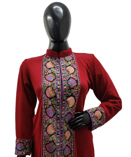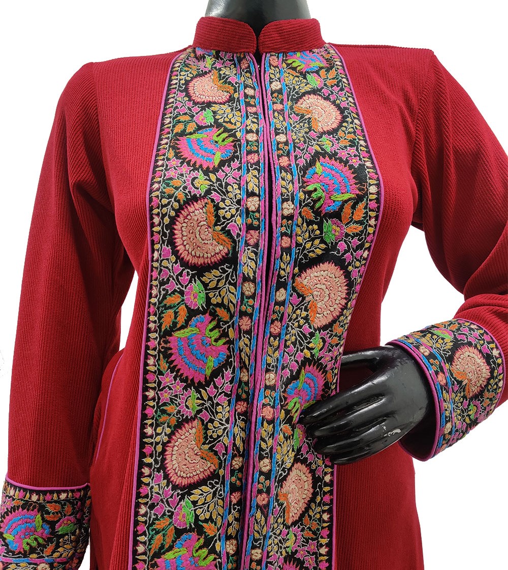 Wrap yourself in elegance with this long handcrafted jacket, meticulously made from premium Cotra fabric for a luxurious feel and lasting comfort. The design features a beautifully detailed hand-needle appliqué border that adds a touch of sophistication and visual appeal. Intricate needlework throughout the piece highlights authentic craftsmanship and showcases artisanal finesse, making it a true testament to traditional artistry. A resplendent winter essential, this jacket not only provides warmth but also elevates your seasonal wardrobe with its refined and timeless style—perfect for both everyday elegance and special occasions.