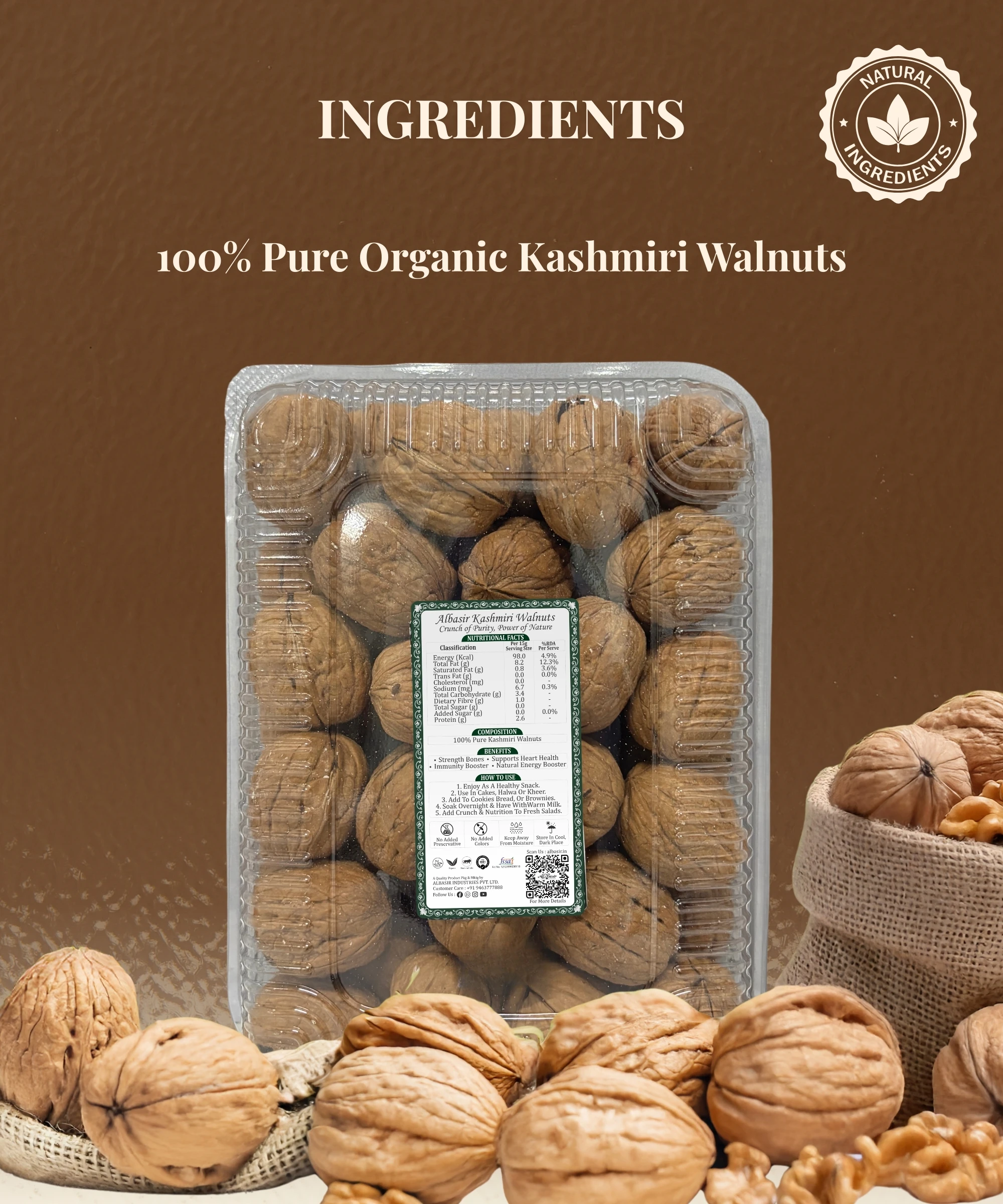 Natural Ingredients Only – Just wholesome walnut in every pack.