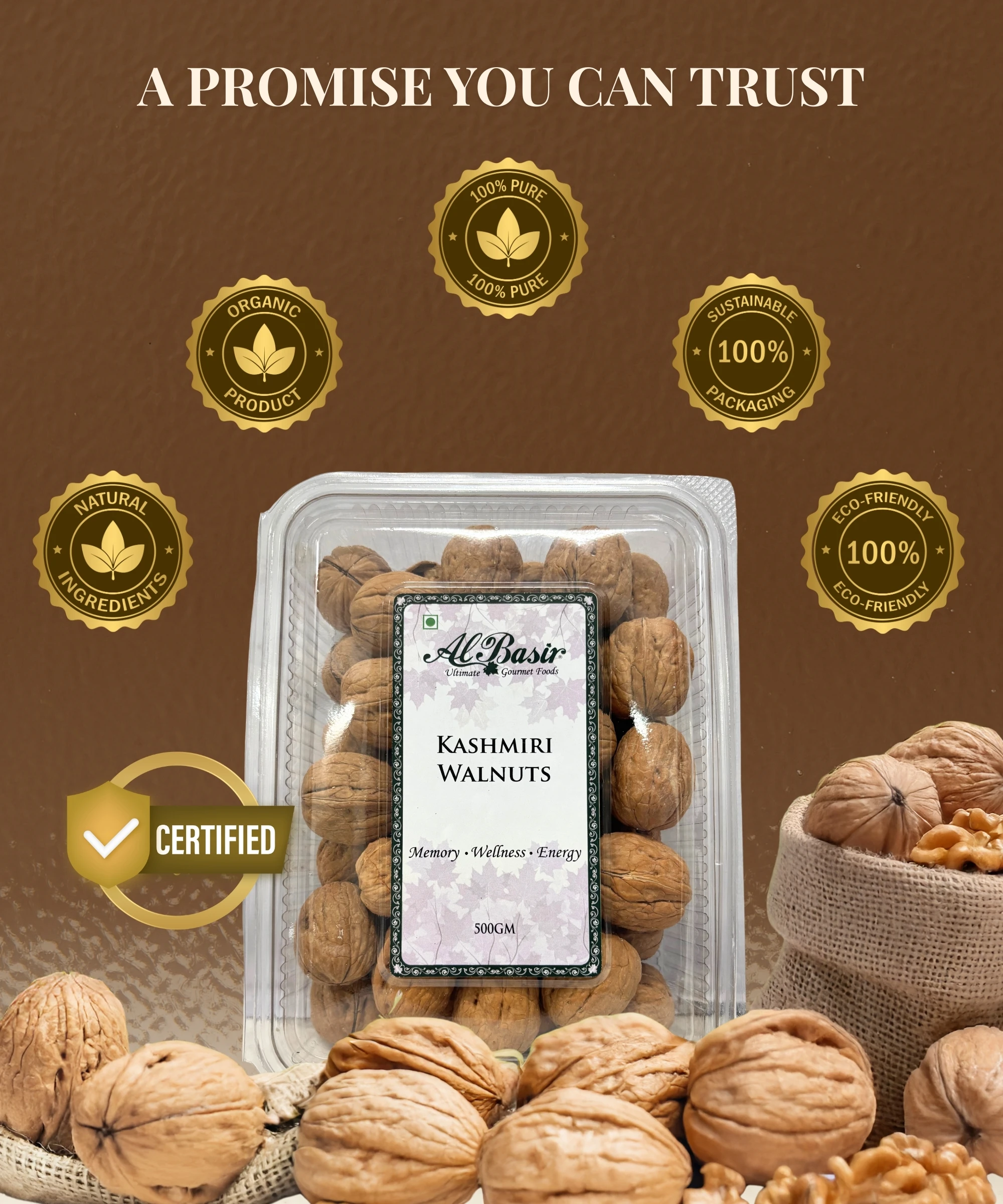 Naturally pure and traditionally harvested, Kashmiri walnuts are a wholesome gift from the Himalayas.