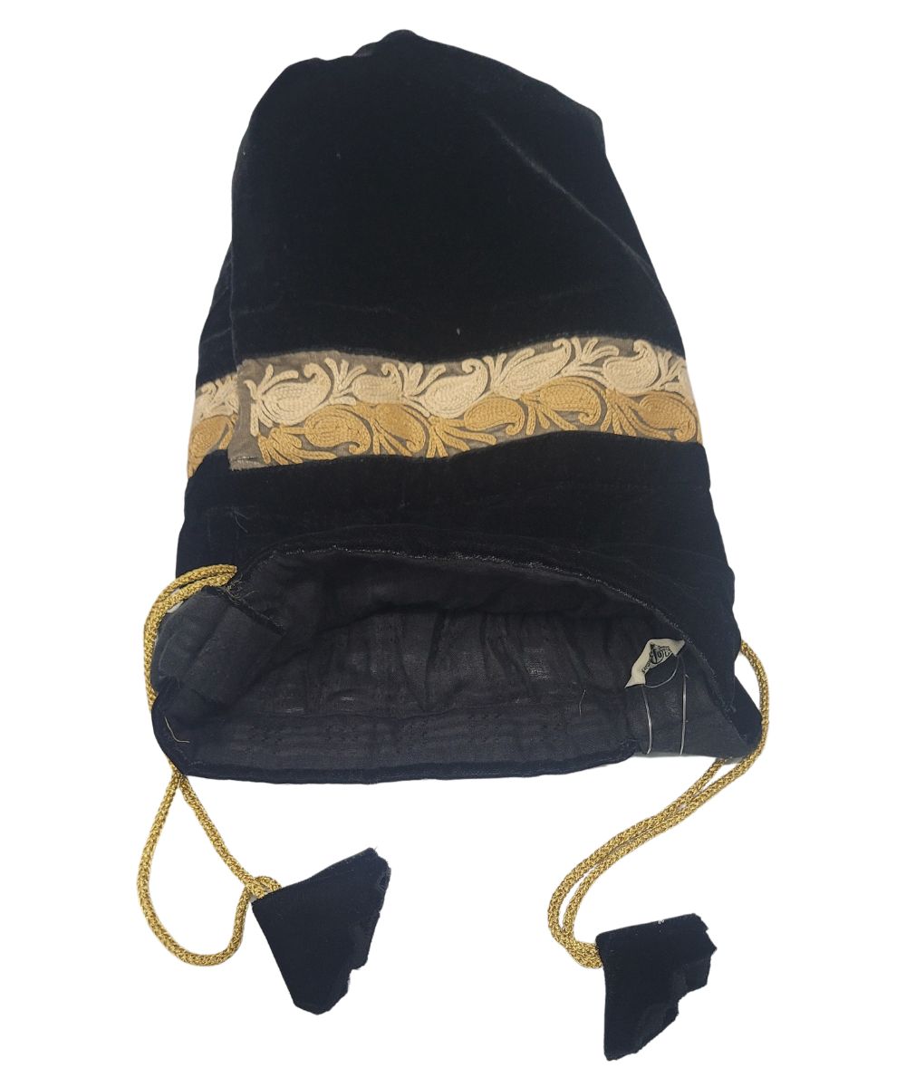 Albasir’s Designer Velvet Potli in an elegant black hue offers timeless appeal, making it a classic addition to your ethnic wardrobe. Crafted from luxurious velvet, this potli showcases intricate Aari embroidery that reflects the finesse of traditional artistry and cultural richness. The subtle yet detailed embroidery adds depth and charm, enhancing its overall elegance. Complementing the design are handcrafted tassels delicately attached to the drawstring closure, providing a graceful finish. Compact and lightweight, it is perfect for carrying your essentials while elevating your look with sophistication. Ideal for weddings, festive celebrations, or special occasions, this potli effortlessly blends style with heritage, making it the perfect accessory to complete your ethnic ensemble with charm and poise.