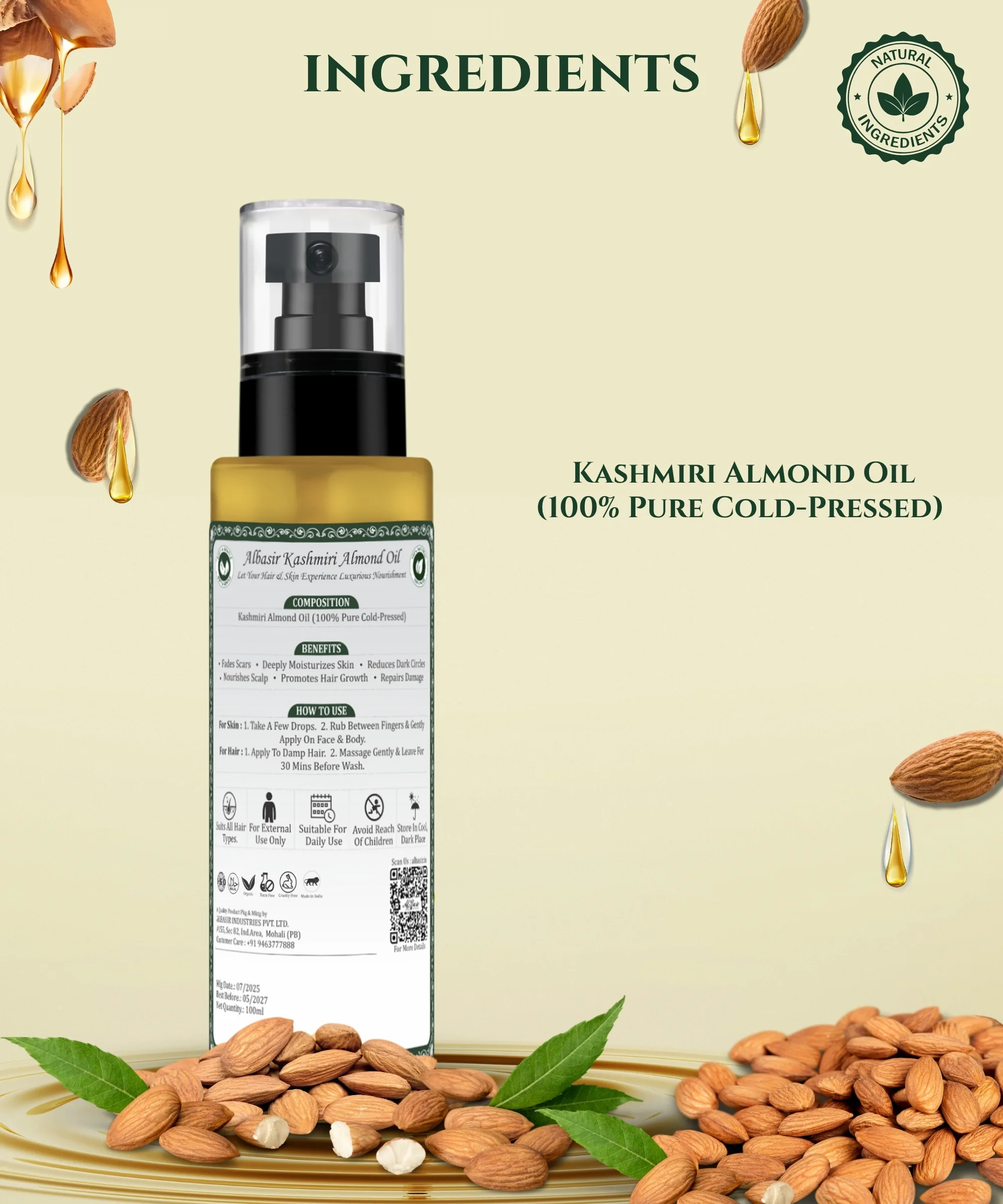 Fades Scars & Blemishes: Kashmiri almond oil gently reduces scars, blemishes, and dark spots over time. Its antioxidant and anti-inflammatory properties support skin repair and improve tone and texture. Consistent use helps fade marks caused by acne or sun damage, leaving skin clearer, more even, and visibly healthier.