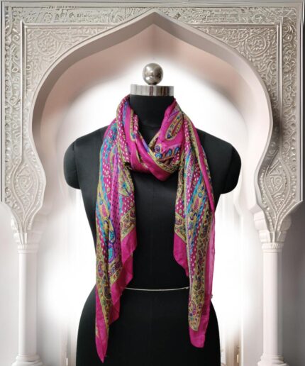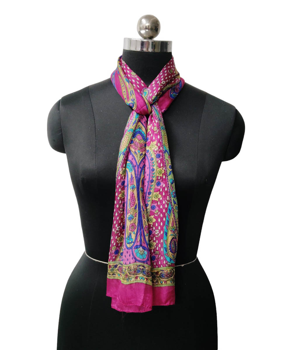 Discover timeless charm with Albasir’s Scarf Kalamkari Silk, featuring a beautiful Kalamkari color that brings a rich and traditional touch to your style. This elegant piece celebrates heritage with its deep hues and unique M print work, which enhances the overall appeal through fine detailing and artistic expression.The classic Jamawar design is adorned with intricate patterns, adding a sense of regal sophistication that elevates both casual and formal attire. Crafted from premium silk, the scarf feels incredibly smooth, soft, and luxurious on the skin, offering lightweight comfort with every wear.A true blend of tradition, elegance, and quality—an essential accessory, only from Albasir.