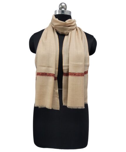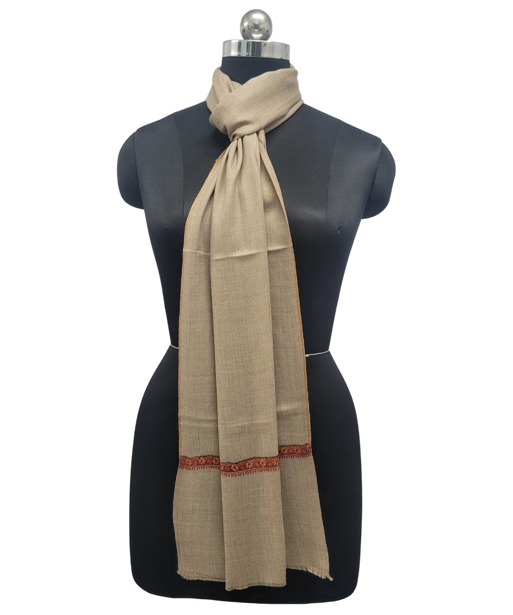 Embrace timeless grace with Albasir’s Pashmina Hashidar Scarf, elegantly presented in a soft beige hue that adds a neutral and versatile touch to any ensemble. Crafted from premium handloom pashmina, this scarf delivers a lightweight, breathable feel with just the right amount of warmth—perfect for effortless year-round layering. The piece is beautifully decorated with intricate hand needle work, showcasing skilled artistry and attention to detail. Featuring the signature Hashidar design, it strikes the perfect balance between cultural heritage and contemporary elegance. Whether worn for special occasions or everyday sophistication, this scarf reflects refined taste and traditional craftsmanship. A statement in subtle luxury and lasting comfort—exclusively from Albasir.