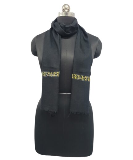 Make a bold and classic statement with Albasir’s Pashmina Hashidar Scarf in timeless black. This elegant accessory features intricate handloom needlework that reflects authentic craftsmanship and artistic charm passed down through generations. The distinctive Hashidar design adds a unique, decorative element, setting it apart from ordinary scarves. Woven from premium quality handloom Pashmina, it offers exceptional softness, lightweight warmth, and long-lasting durability. Perfect for both everyday elegance and special occasions, this scarf drapes beautifully and elevates any outfit with its refined detailing. Whether styled with formal attire or layered over casual wear, it’s a versatile piece that speaks of tradition and sophistication. Embrace the perfect blend of heritage and luxury with this beautifully crafted black Pashmina Hashidar scarf.