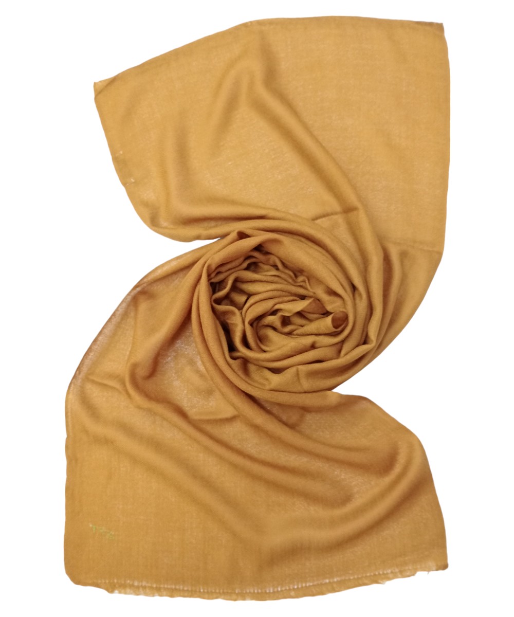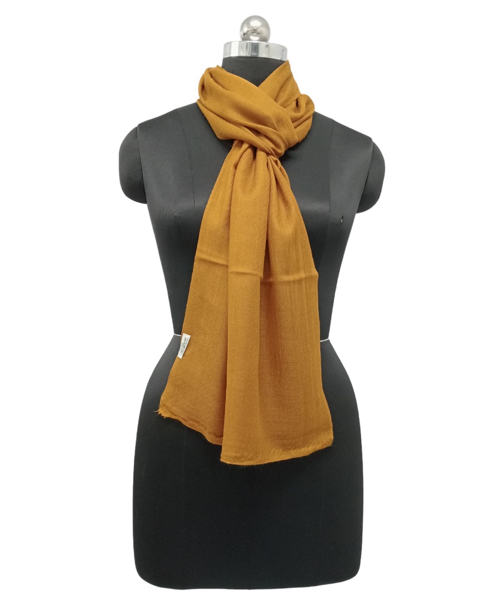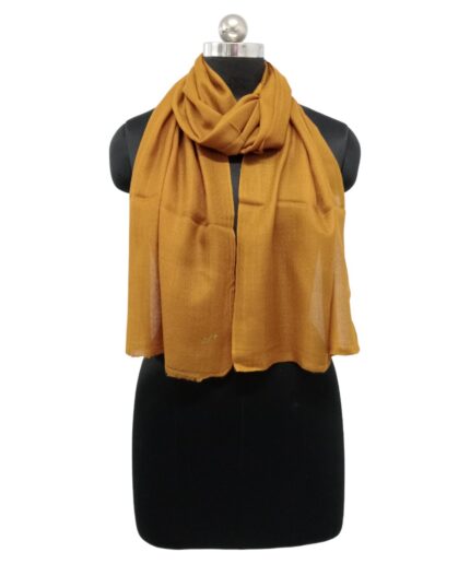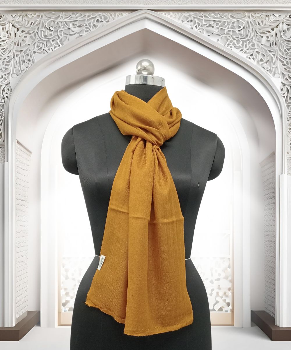 Elevate your wardrobe with Albasir’s Scarf Plain Pashmina in a vibrant mustard color, bringing a warm hue and a stylish edge to any ensemble. The rich tone adds personality while maintaining a refined elegance, perfect for both everyday wear and special occasions.Crafted using traditional handloom weave, this scarf features subtle texture and cultural character, reflecting skilled artisan work. Its plain design offers a clean, versatile, and sophisticated look, making it easy to pair with a variety of outfits.Woven from premium handloom Pashmina, it delivers plush softness, lightweight warmth, and luxurious comfort. A beautiful fusion of minimalism and tradition—only from Albasir.