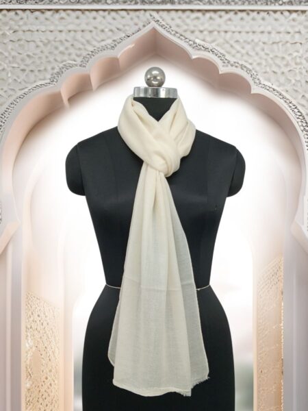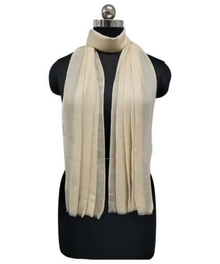 Elevate your elegance with Albasir’s Plain Pashmina Scarf in a delicate cream shade, radiating soft, timeless appeal. Expertly woven using traditional handloom techniques, this scarf features subtle texture that highlights artisanal craftsmanship and adds depth to the fabric. Its minimalist plain design embraces sophistication and simplicity, making it a versatile accessory for any occasion. Crafted from premium handloom pashmina, the scarf offers exceptional softness and gentle warmth, ensuring comfort throughout the day. Whether draped casually or styled with formal wear, it enhances your look with understated luxury and classic charm. A perfect blend of heritage and modern style—exclusively from Albasir.