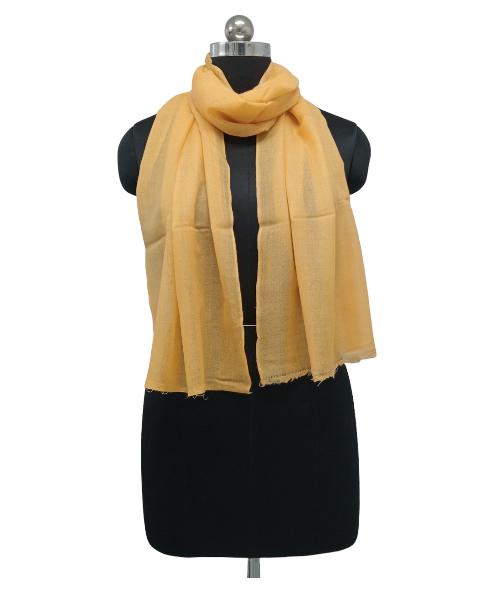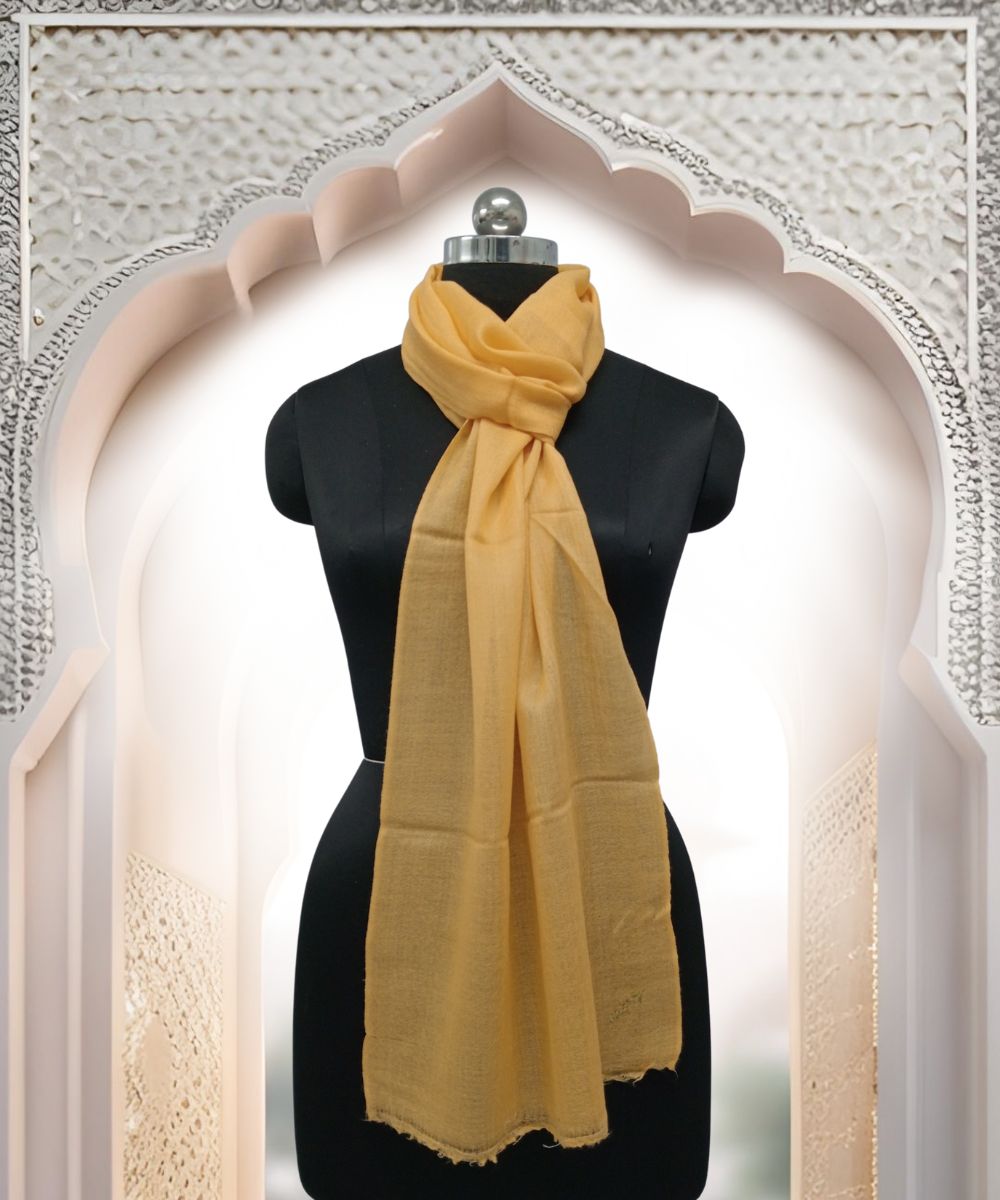 Brighten your look with Albasir’s Scarf Plain Pashmina in a stunning yellow color that beautifully blends earthy warmth with a fashion-forward edge. This vibrant yet balanced hue adds a cheerful sophistication, making it perfect for both daytime wear and elegant evenings.Woven with a delicate handloom technique, the scarf showcases fine craftsmanship, elegance, and artistic charm that highlight its unique quality. The plain design keeps the overall look clean, polished, and ideal for effortless layering, enhancing any outfit with subtle grace.Crafted from premium handloom Pashmina, it offers a luxurious feel with lightweight warmth and softness, ideal for year-round comfort. A true expression of color and class—only from Albasir.
