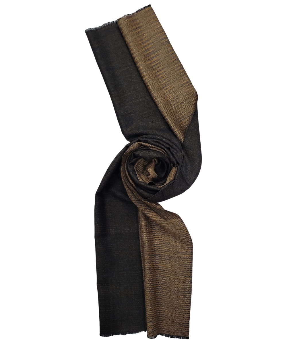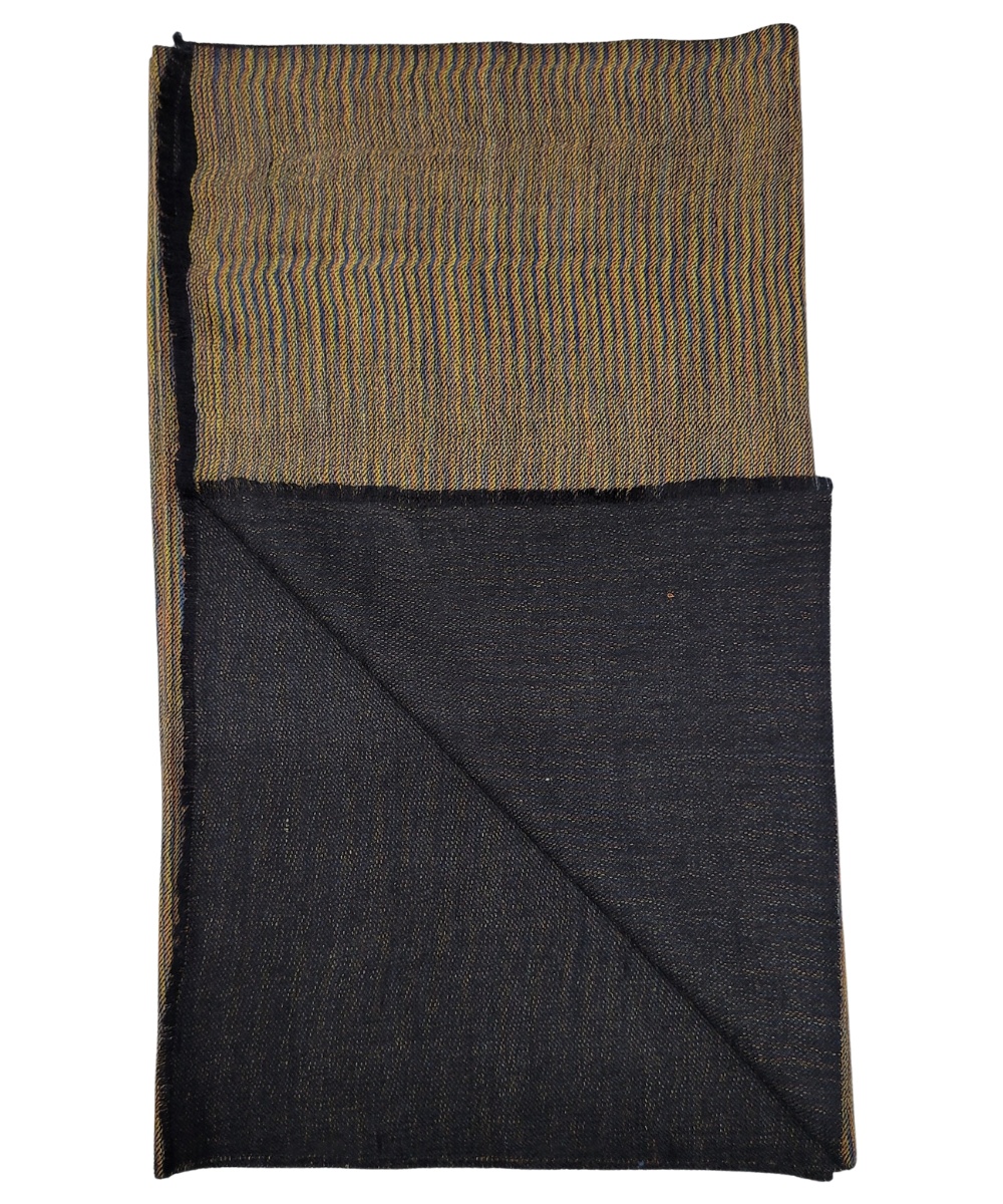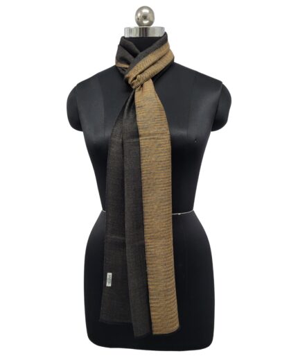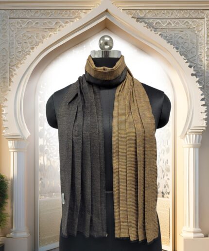 Make a bold statement with Albasir’s Reversible Pashmina Scarf, featuring a striking contrast of black and mustard tones that blend traditional elegance with contemporary flair. Expertly woven using handloom techniques, this scarf showcases rich texture and artisanal detailing that reflects the depth of skilled craftsmanship. The design features a unique fusion of Ikat Khadi patterns and a reversible style, offering two sophisticated looks in one versatile accessory. Made from premium handloom pashmina fabric, it provides luxurious softness, lightweight warmth, and all-day comfort. Whether styled for a formal event or an everyday ensemble, this scarf brings cultural richness and modern versatility to your wardrobe. A refined blend of tradition, texture, and bold style—only from Albasir.