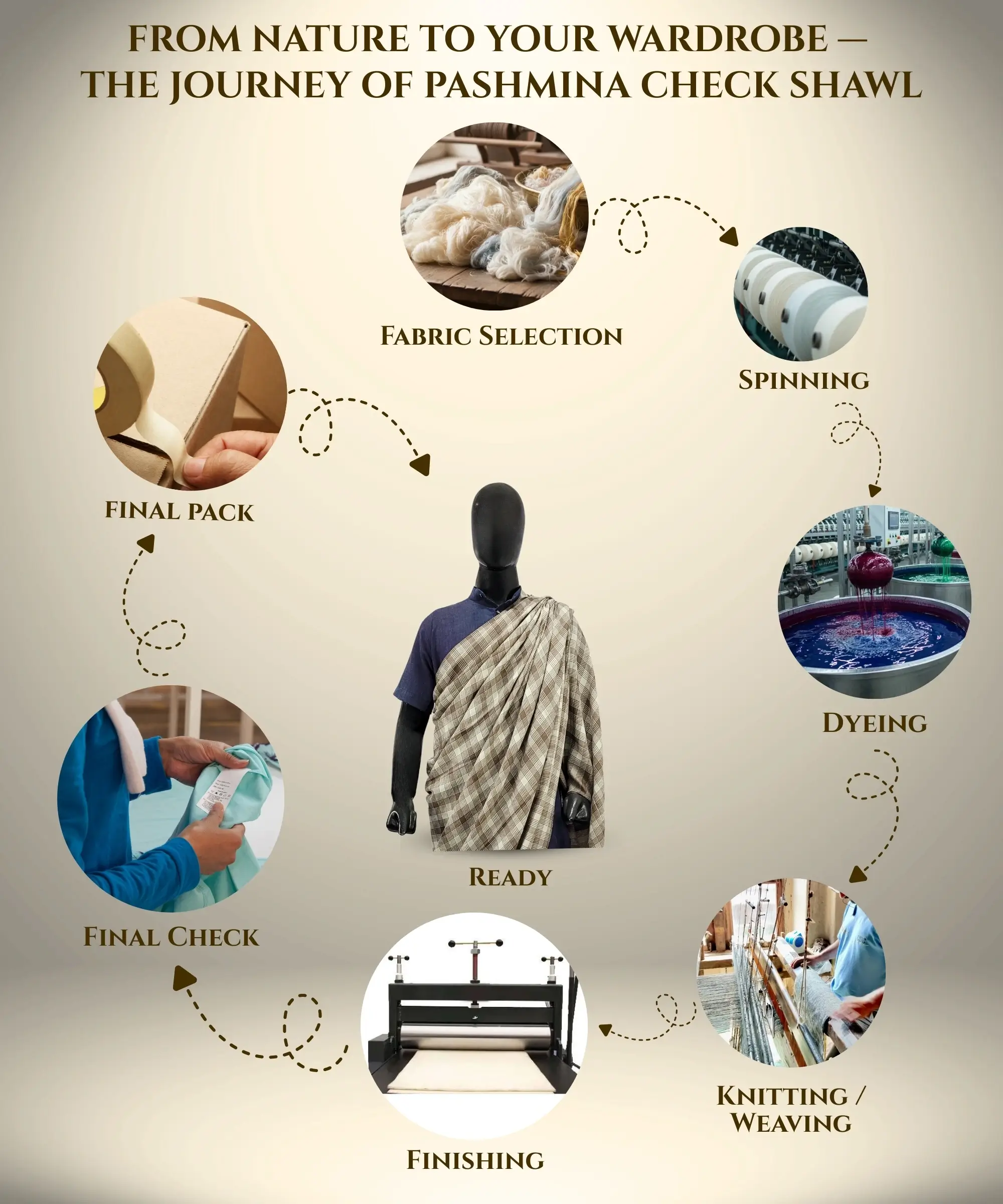 Introducing the Pashmina Check Shawl by Albasir, a timeless winter accessory that blends heritage craftsmanship with refined design. This elegant Albasir shawl features a soft beige color and a stylish, eye-catching check pattern that speaks of subtle sophistication. Crafted with care from the finest quality handloom Pashmina, the Albasir Pashmina Check Shawl reflects the excellence and legacy that the Albasir name is known for.Each Albasir shawl is woven using traditional handloom techniques passed down through generations of artisans. The texture is luxuriously soft, making it not only beautiful but also practical for cold-weather wear. The check design is classic yet contemporary, showcasing Albasir’s dedication to combining timeless style with everyday versatility. Whether paired with formal attire or layered over casual outfits, the Albasir Check Pashmina Shawl adds warmth and elegance in equal measure.Choosing Albasir means choosing authenticity. Every Albasir piece is thoughtfully designed, carefully crafted, and made to last. The beige tone allows for effortless styling across a variety of color palettes and seasons. With Albasir, you don’t just wear a shawl—you carry a piece of heritage, artistry, and tradition.Make the Pashmina Check Shawl by Albasir your go-to winter essential. Trust Albasir to bring together comfort, style, and legacy in every weave. When it comes to quality, beauty, and warmth, Albasir is the name you can always rely on. Wrap yourself in tradition—only with Albasir.