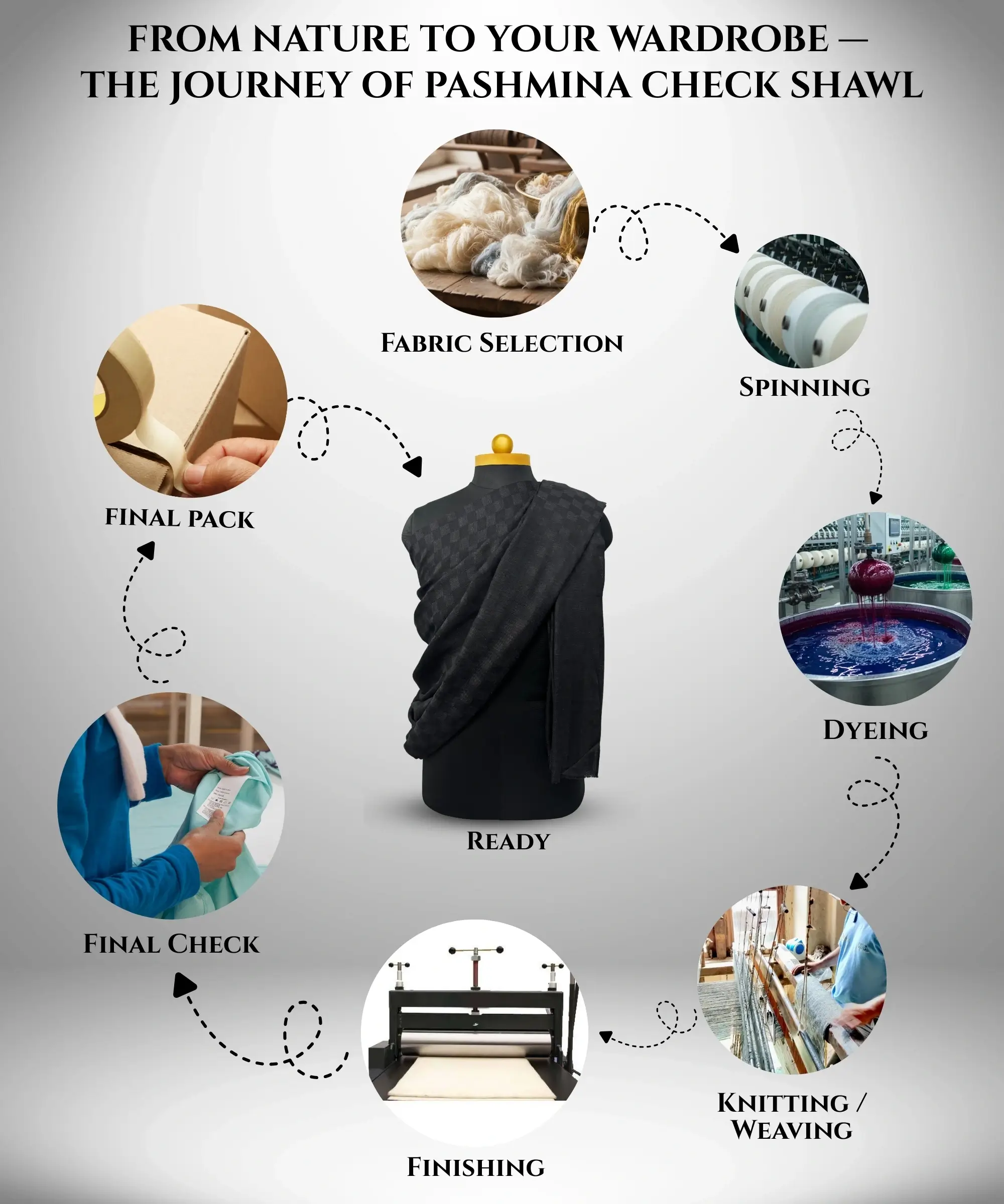 Crafted from premium handloom Pashmina, this Albasir shawl offers exceptional softness, lightweight comfort, and natural warmth. The fine fibers create a smooth, graceful drape that rests effortlessly on the shoulders without feeling heavy, ensuring comfort throughout the day or evening.