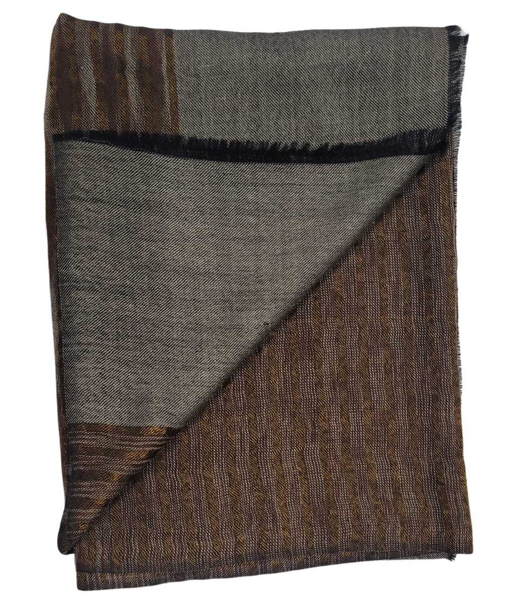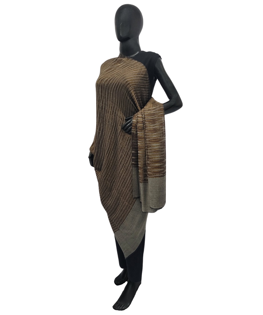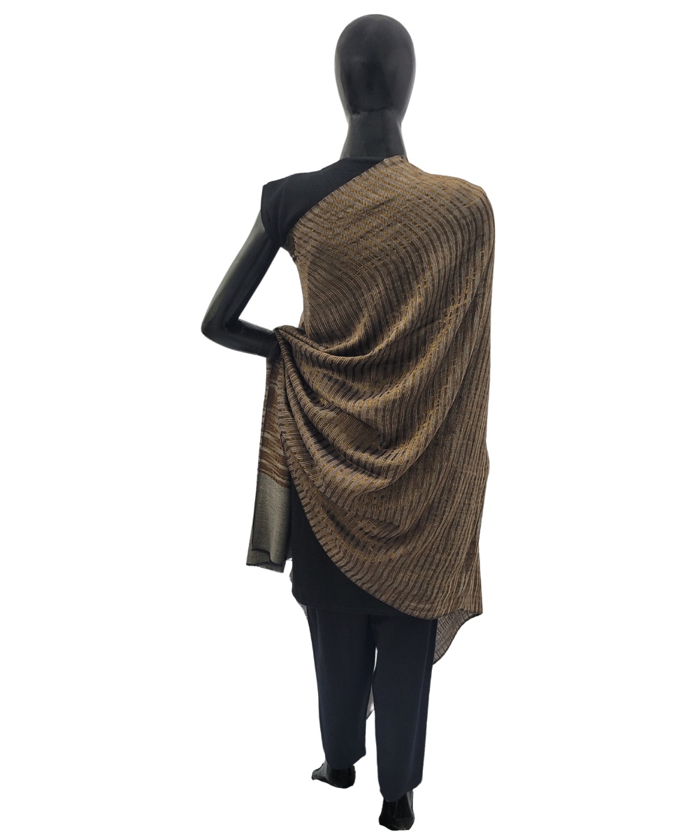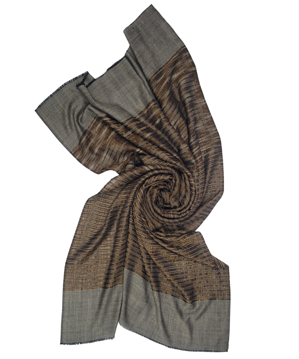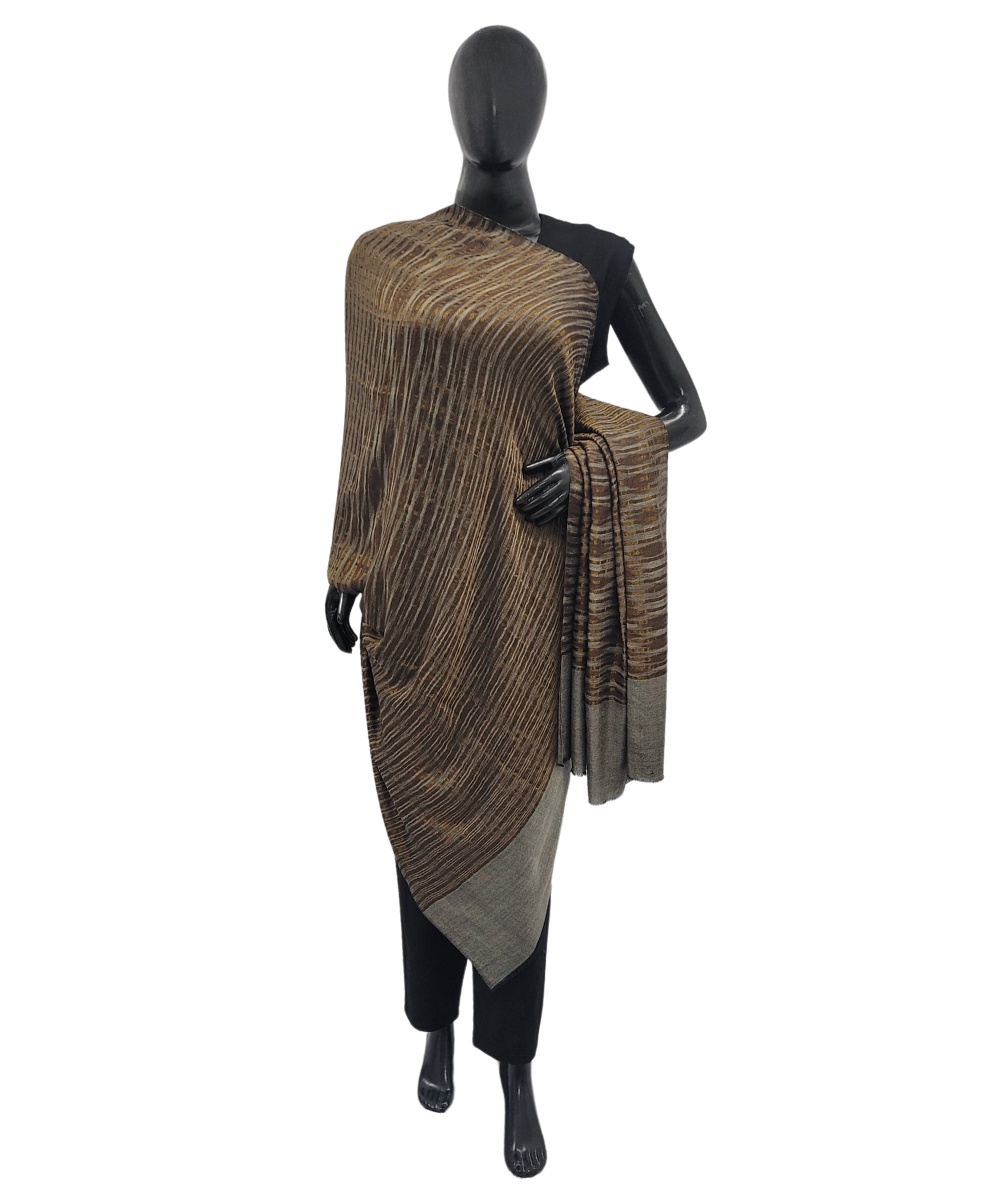 An exquisite Shawl Zari Stripe Pashmina is a stunning expression of timeless elegance, tradition, and artistry. Crafted from premium Pashmina and woven on traditional handlooms, this shawl features a mesmerizing array of vibrant multicolors, blended beautifully to reflect richness and warmth. The gentle softness of handloom-woven Pashmina ensures it feels incredibly cozy against the skin, making it a perfect choice for cold-weather styling without compromising on sophistication. This shawl is elevated by intricate Zari weaving, adding a subtle metallic shine that enhances its luxurious appeal. The striped design—carefully woven with traditional Ikat-inspired patterns—adds rhythm and balance to the visual composition, making it a true fusion of cultural craftsmanship and contemporary flair.Whether you’re dressing for a formal occasion, layering for a casual day out, or looking to make a statement at a festive gathering, the Shawl Zari Stripe Pashmina is as versatile as it is eye-catching. Its radiant tones and shimmer make it a standout accessory, while its lightweight warmth offers practical comfort throughout the colder months. Style it over a solid-colored kurta, drape it over an evening dress, or use it as a statement layer with your winter coat — this shawl transforms every outfit with its graceful presence.Each Zari Stripe Pashmina Shawl is a testament to the skill of artisan weavers, combining heritage with modern elegance. It’s not just an accessory — it’s a piece of wearable art designed to last and to be cherished for generations.