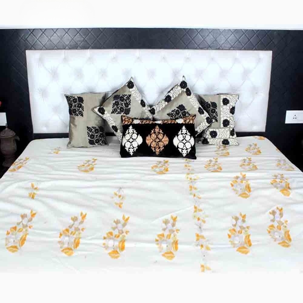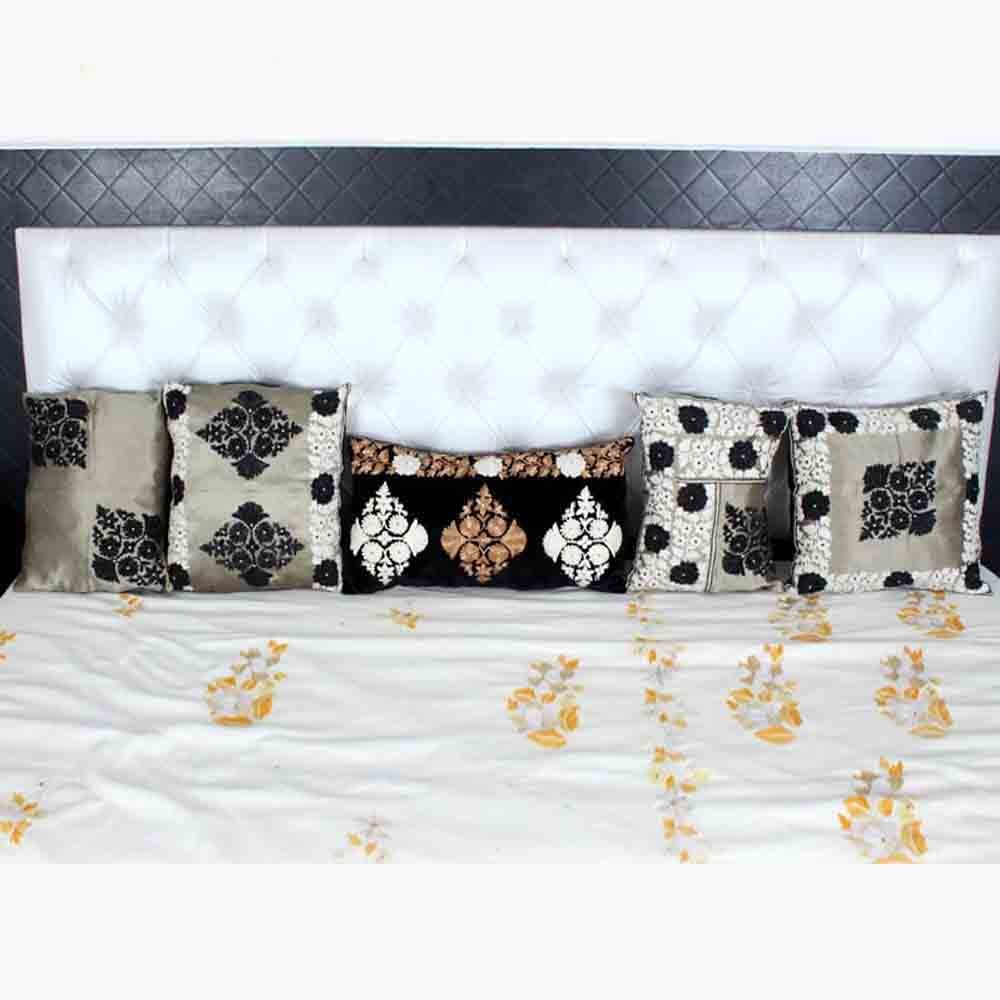 Discover an exquisite array of designer and decorative cushion covers crafted from premium-grade fabrics such as cashmere, khadi, wool, silk, velvet, cotton, and more. Our dedicated team of skilled designers meticulously conceive captivating designs spanning traditional, floral, geometrical, landscape, border, motifs, kani, stripes, khadi, kalamkari, checks, and an assortment of other alluring styles. Nestled within our company are adept artisans renowned for their expertise in ne, ari work, zari, embellishments, and an array of other intricate techniques. Each piece undergoes a meticulous design process, ensuring a harmonious blend of color and pattern, culminating in truly exceptional creations. The journey from conception to completion spans several months, reflecting the painstaking attention to detail invested in every artwork. Versatile in application, these cushion covers serve as exquisite embellishments for beds, sofas, settees, diwan sets, and any preferred space, elevating interiors with their timeless elegance and artisanal charm.