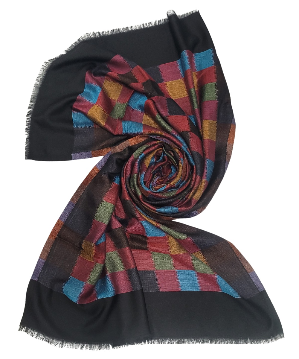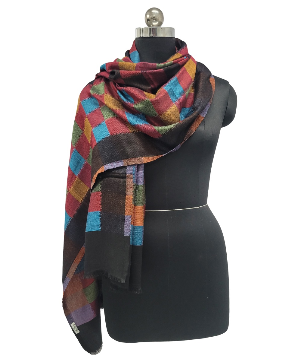 Brighten your look with the Albasir Ikat Reversible Stole, featuring a striking blend of black and multi-color tones that add color and charm to your day. Expertly crafted from luxurious silk fabric, this stole showcases traditional Ikat artistry paired with a reversible design, offering two elegant style options in one. The fine powerloom weave ensures durability, comfort, and a graceful drape that complements any outfit. Lightweight yet warm, it’s perfect for both cool and warm seasons. Whether you’re attending a formal event or adding flair to everyday wear, this versatile stole pairs effortlessly with both western and traditional attire. The Albasir black & multi-color Ikat reversible stole is the ideal accessory for year-round elegance and style.