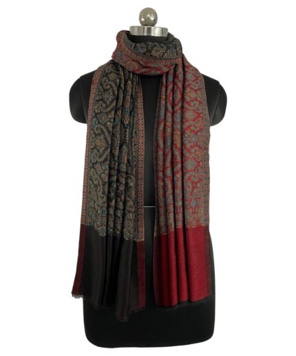 Embrace tradition and elegance with Albasir’s Kani Reversible Stole, a stunning piece featuring a rich blend of red and black. This exquisite stole showcases delicate Kani weave work, reflecting fine craftsmanship and artistic heritage. The intricate Jamawar patterns, combined with a reversible design, offer a unique appeal and versatile styling options—perfect for both classic and contemporary ensembles. Crafted from the highest quality handloom Pashmina fabric, it delivers unmatched softness, warmth, and luxury. Whether worn over ethnic wear or modern outfits, this stole effortlessly elevates your look with grace and sophistication. A timeless addition to your wardrobe, the Kani Reversible Stole embodies Albasir’s legacy of fine artistry, making it an ideal accessory for any occasion, season, or celebration.