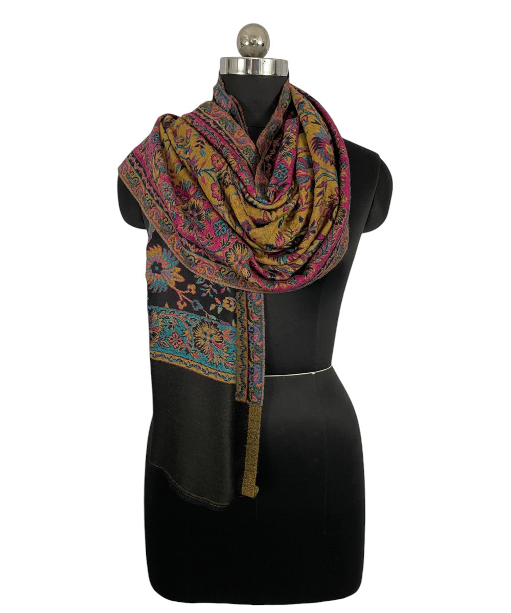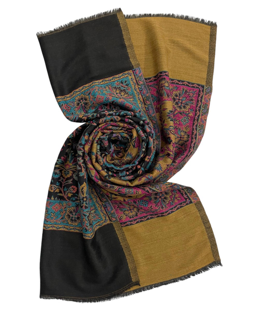 Wrap yourself in warmth and elegance with the Albasir Kani Reversible Stole, featuring a stunning combination of black and mustard tones. This beautifully crafted accessory blends comfort with modern flair, making it a versatile addition to any wardrobe. Showcasing an intricate Jamawar Kani weave, the reversible design offers two distinct yet equally elegant looks. Made from premium quality handloom Pashmina fabric, it ensures a soft, luxurious feel and lightweight warmth—perfect for any season. Whether you’re dressing up for a festive event or layering it over a casual outfit, this stole pairs effortlessly with both traditional and contemporary styles. The Albasir black and mustard Kani Reversible Stole is a timeless piece that brings together heritage craftsmanship and modern sophistication.