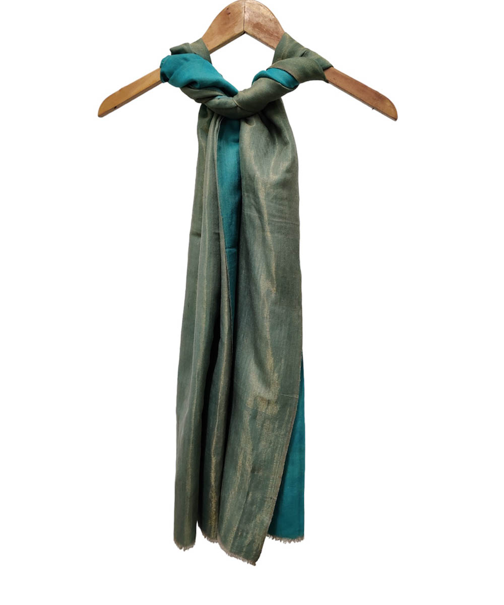 Add a touch of timeless elegance to your wardrobe with the Albasir Zari Reversible Pashmina Stole, gracefully designed in striking Ferozi and golden shades that offer a classic and sophisticated look. Expertly crafted with delicate Zari weave work, this stole features a reversible design that showcases two elegant styles in one, reflecting a unique and refined aesthetic. Made from premium quality handloom pashmina fabric, it provides a luxuriously soft feel, lightweight warmth, and lasting comfort. Whether paired with traditional outfits or styled with contemporary wear, this versatile accessory adds effortless charm to any ensemble. The Albasir Ferozi & Golden Zari Reversible Pashmina Stole is a perfect blend of tradition, luxury, and modern style—an essential piece for every elegant wardrobe.
