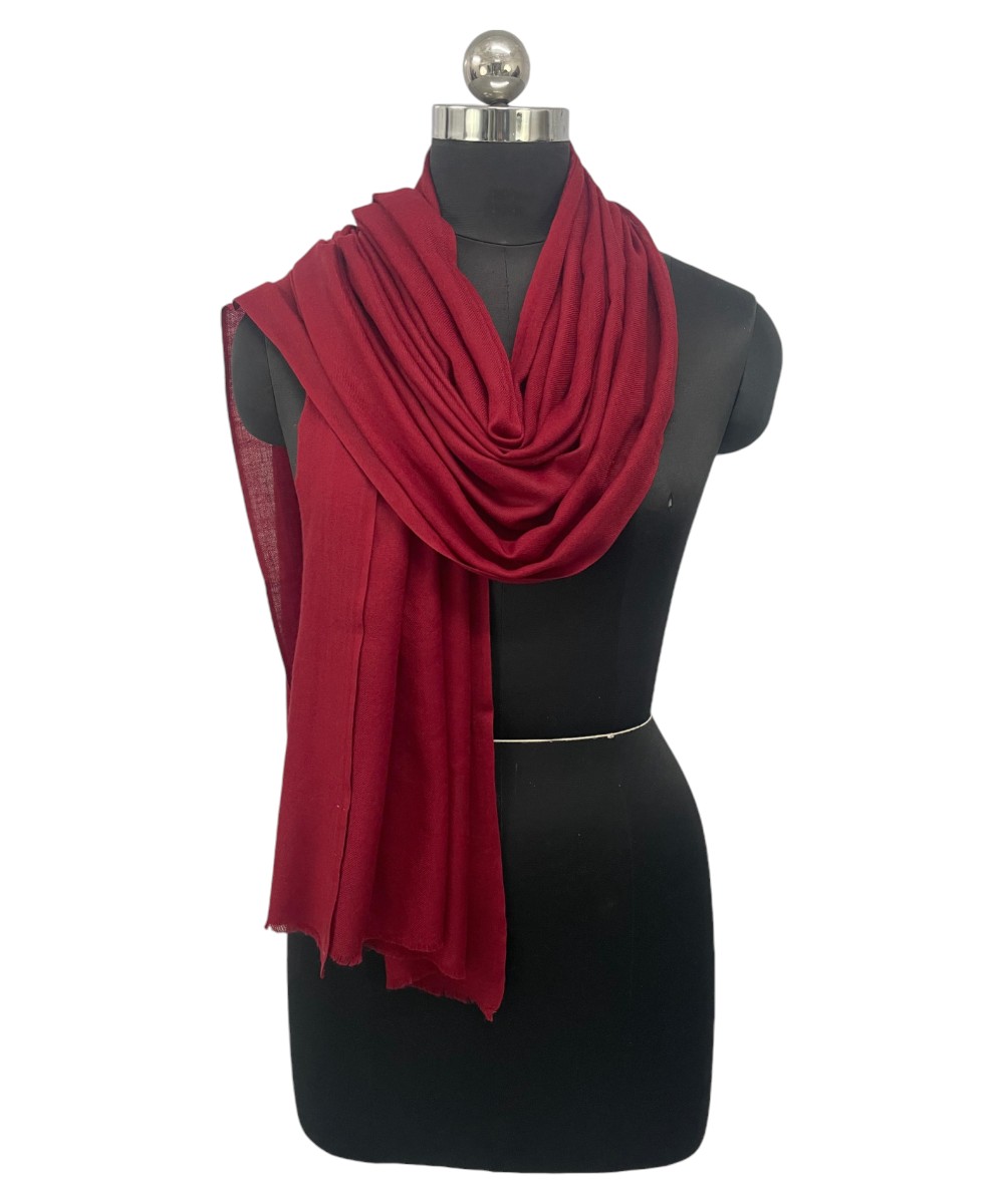 Wrap yourself in timeless elegance with the Albasir Plain Pashmina Stole, beautifully crafted in a rich, classic maroon shade. This stole features a delicate handloom weave that offers a soft, luxurious feel and a graceful drape. The understated plain design reflects a refined sense of style, perfect for those who appreciate minimal elegance with a traditional touch. Made from the finest quality handloom Pashmina, it provides lightweight warmth and comfort, making it ideal for cooler days and evening gatherings. Whether paired with ethnic attire or contemporary outfits, this versatile stole enhances your look with subtle sophistication. The Albasir maroon Pashmina stole is a must-have accessory for every wardrobe, offering a perfect blend of tradition, quality, and everyday elegance.