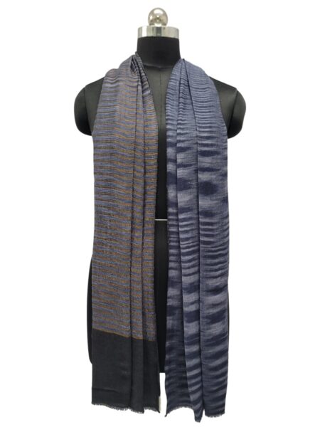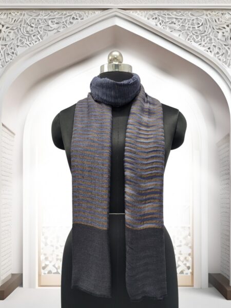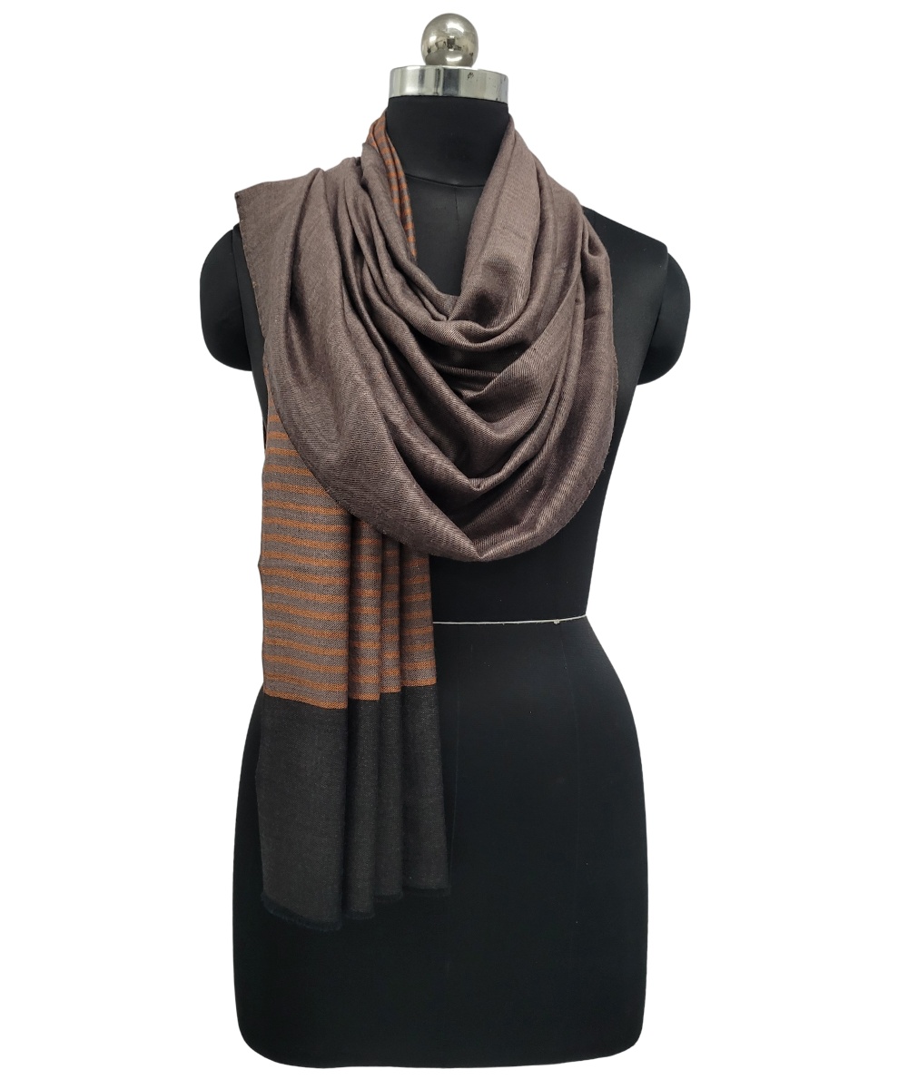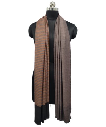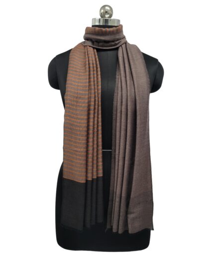 Elevate your style with Albasir’s Reversible Pashmina Stole, elegantly woven in a sophisticated blend of orange and grey tones. This stunning stole features delicate handloom weave work that reflects authentic craftsmanship and cultural heritage. The intricate striped pattern is beautifully balanced with a fully reversible design, offering two refined looks in one luxurious accessory. Crafted from superior quality handloom Pashmina fabric, it delivers exceptional softness, warmth, and a lightweight drape—ideal for both everyday elegance and special occasions. Whether paired with traditional wear or modern ensembles, this versatile stole enhances any outfit with a touch of grace and timeless appeal. A must-have addition to your wardrobe, it’s the perfect fusion of comfort, artistry, and refined fashion.
