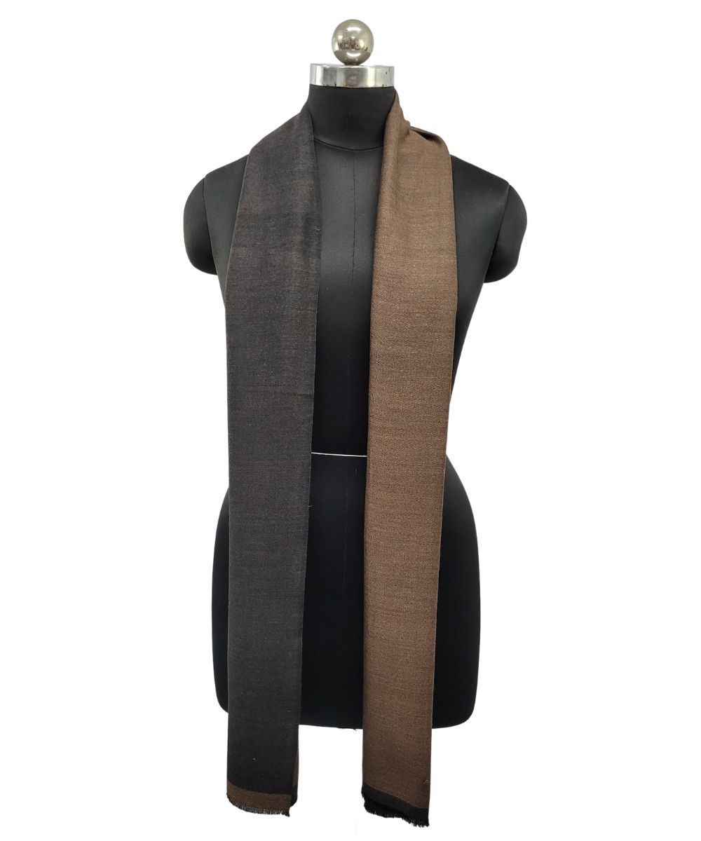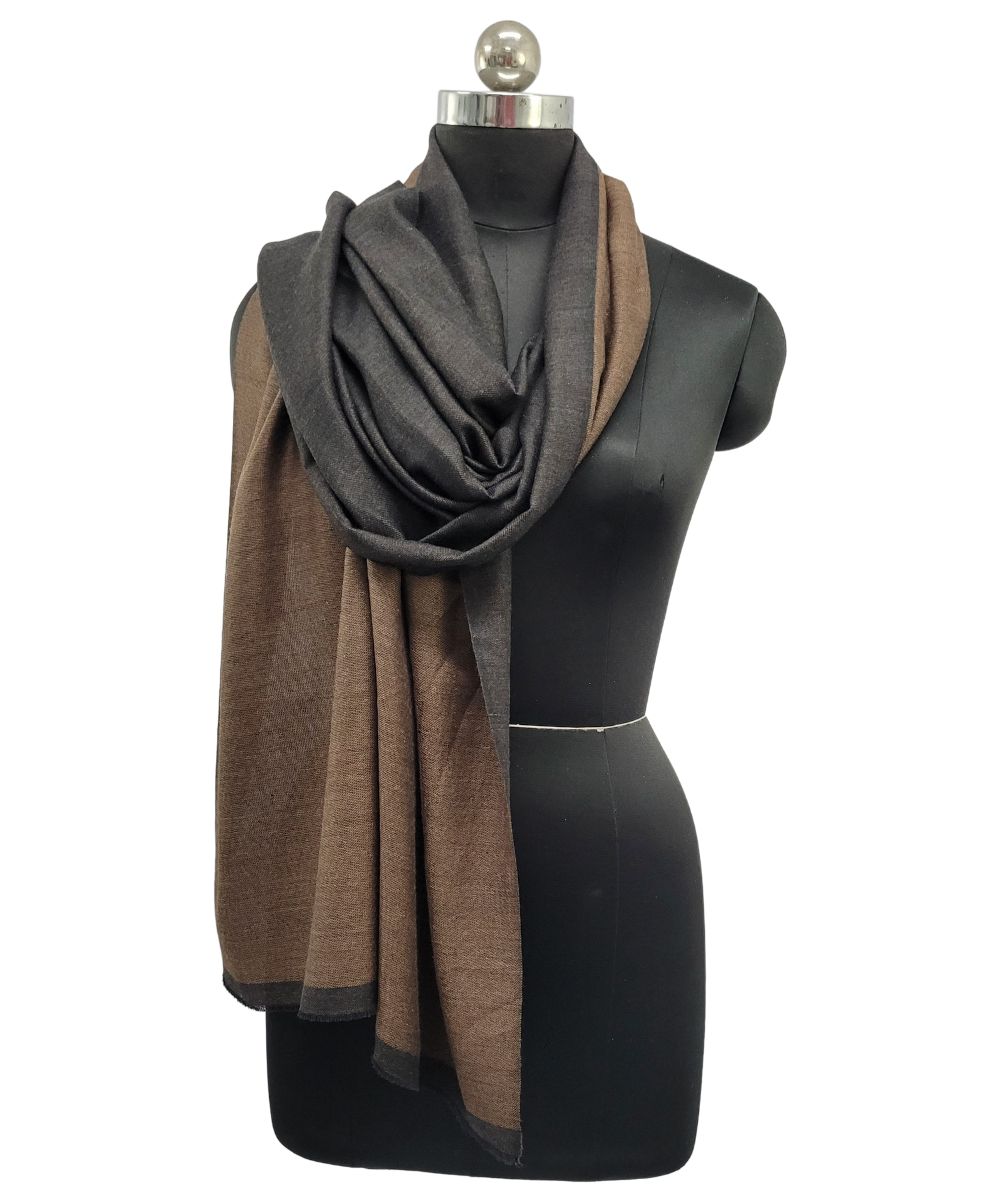Elevate your look with Albasir’s luxurious reversible Pashmina stole in rich brown and deep black tones. This elegant stole is expertly woven with intricate handloom craftsmanship, showcasing a reversible design that offers two equally refined looks in one piece. Crafted from the finest quality handloom Pashmina fabric, it delivers unmatched softness, warmth, and a feather-light feel that’s perfect for every season. Whether paired with traditional attire or modern ensembles, this versatile stole adds a graceful and stylish touch. Its timeless color palette ensures it blends seamlessly into any wardrobe, making it an essential accessory for formal events, festive gatherings, or everyday sophistication. Wrap yourself in elegance and comfort with Albasir.