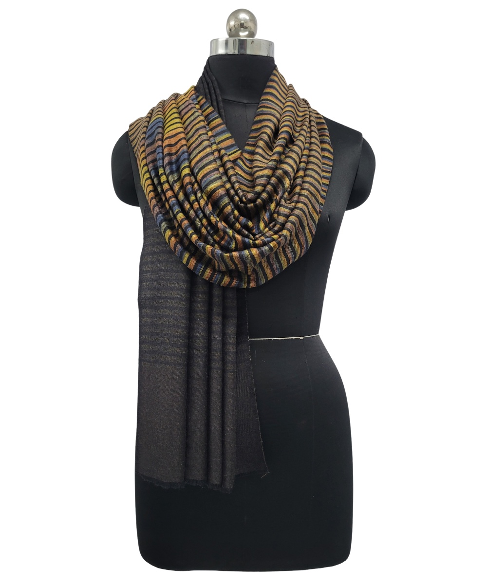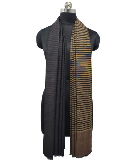 Add a touch of vibrant elegance to your wardrobe with Albasir’s Reversible Pashmina Stole, crafted in a rich and striking blend of yellow and black. This classic stole showcases delicate handloom weave work, reflecting authentic craftsmanship and traditional charm. The intricate striped pattern is enhanced by a fully reversible design, offering two unique and equally stylish looks in one accessory. Made from high-quality handloom Pashmina fabric, it provides exceptional softness, lightweight warmth, and a luxurious drape that flows effortlessly. Perfect for both everyday wear and special occasions, this versatile stole complements traditional outfits and modern ensembles alike. A timeless piece that combines heritage artistry with contemporary appeal, making it an essential addition to your elegant wardrobe.