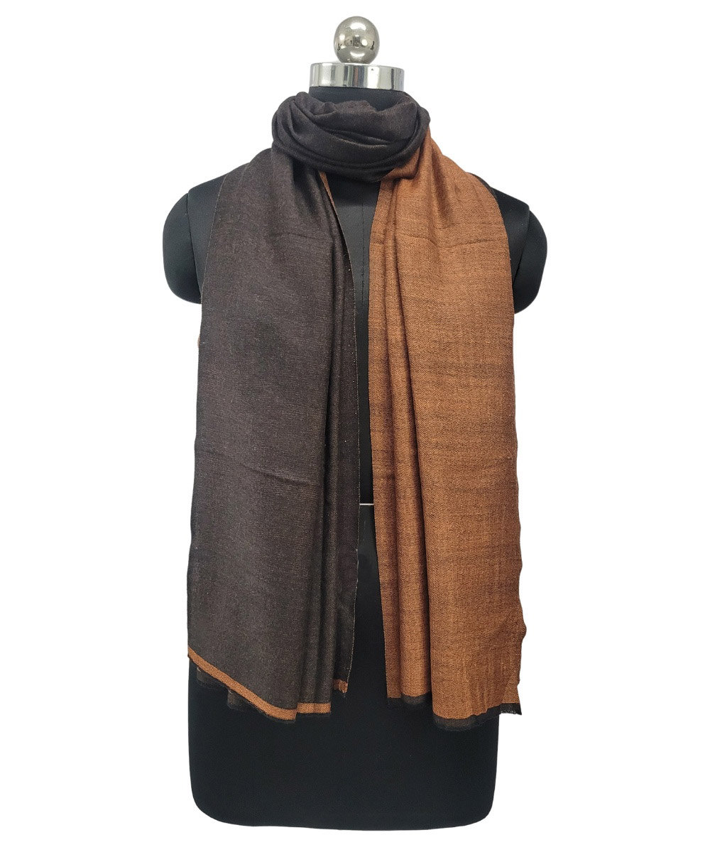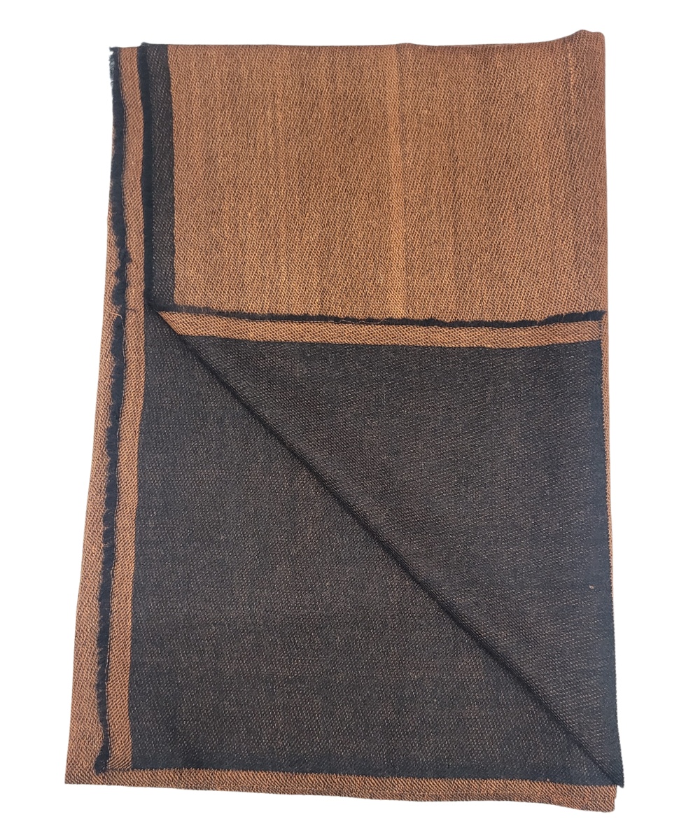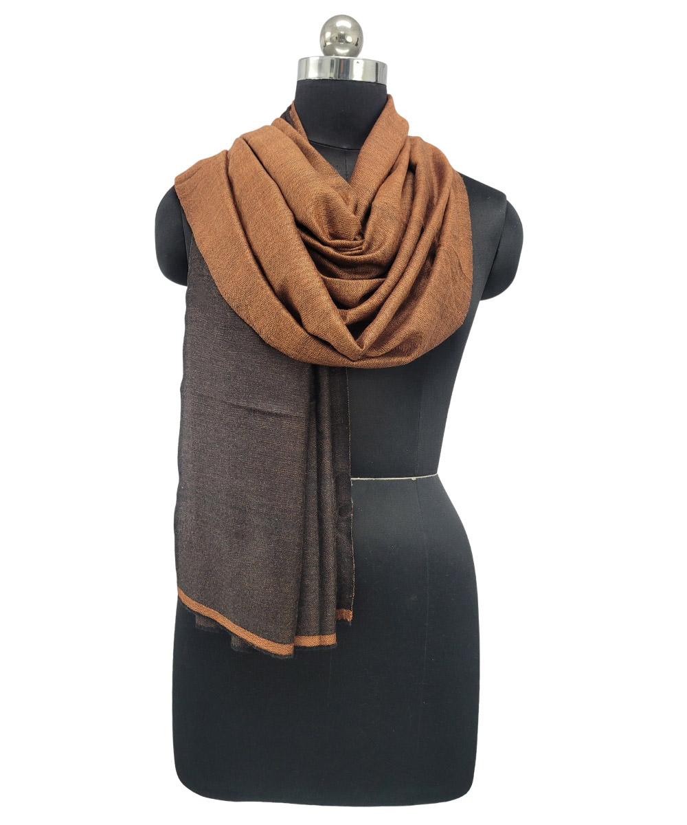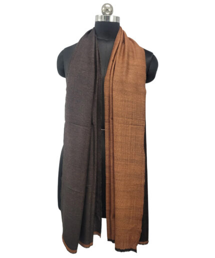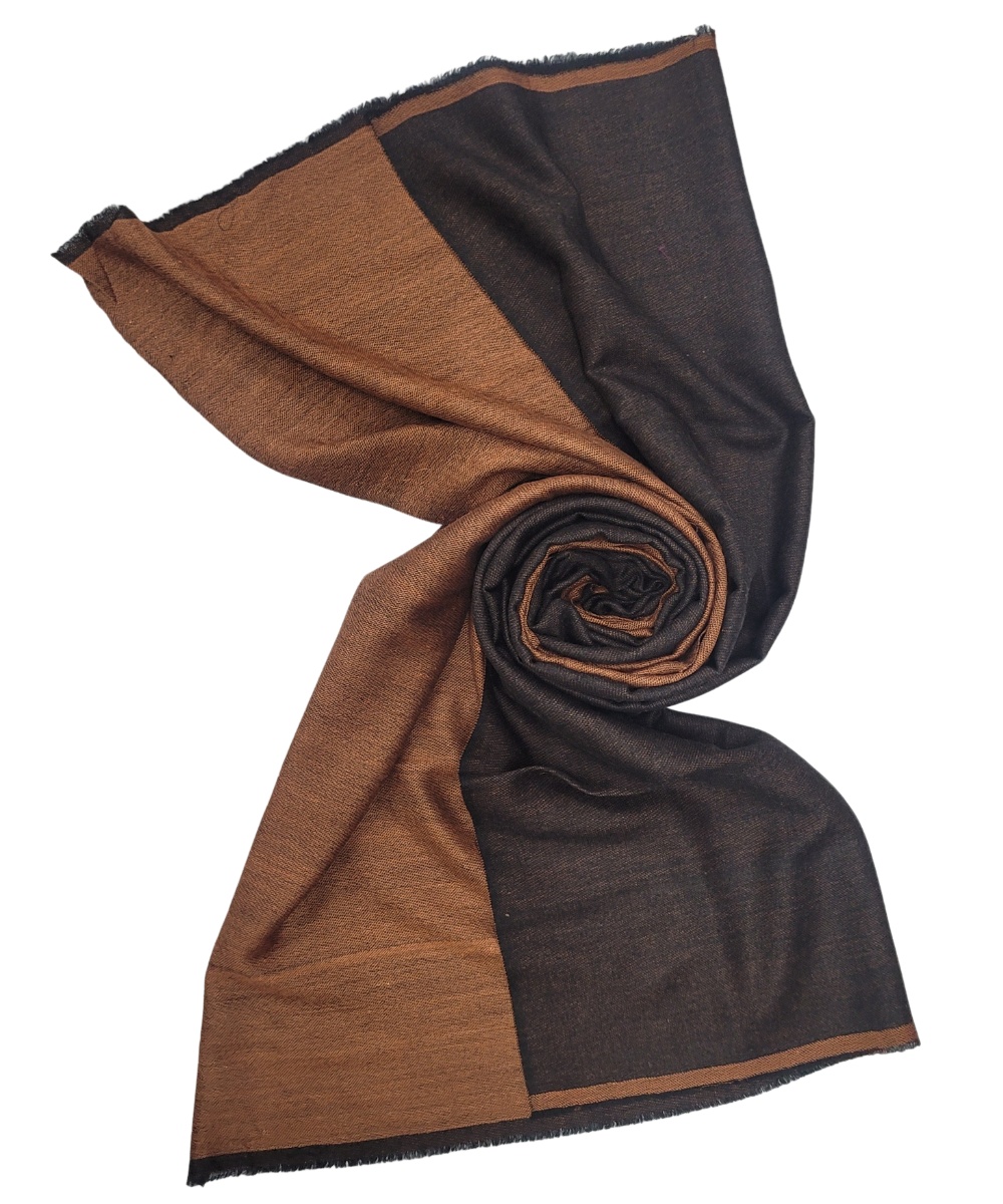 Add a refined touch to your wardrobe with the Albasir Reversible Pashmina Stole, featuring a clean and modern blend of rust and black tones. Expertly woven on traditional handlooms, this stole showcases meticulous craftsmanship through its intricate weave and thoughtfully designed reversible finish — offering two elegant styles in one accessory. Crafted from high-quality handloom Pashmina, it provides a luxuriously soft texture, lightweight warmth, and a graceful drape that enhances any look. Whether paired with western silhouettes or traditional ensembles, this versatile stole effortlessly elevates your outfit with a sophisticated edge. The Albasir rust and black reversible Pashmina stole is a timeless piece that combines authenticity, comfort, and modern elegance for any occasion.