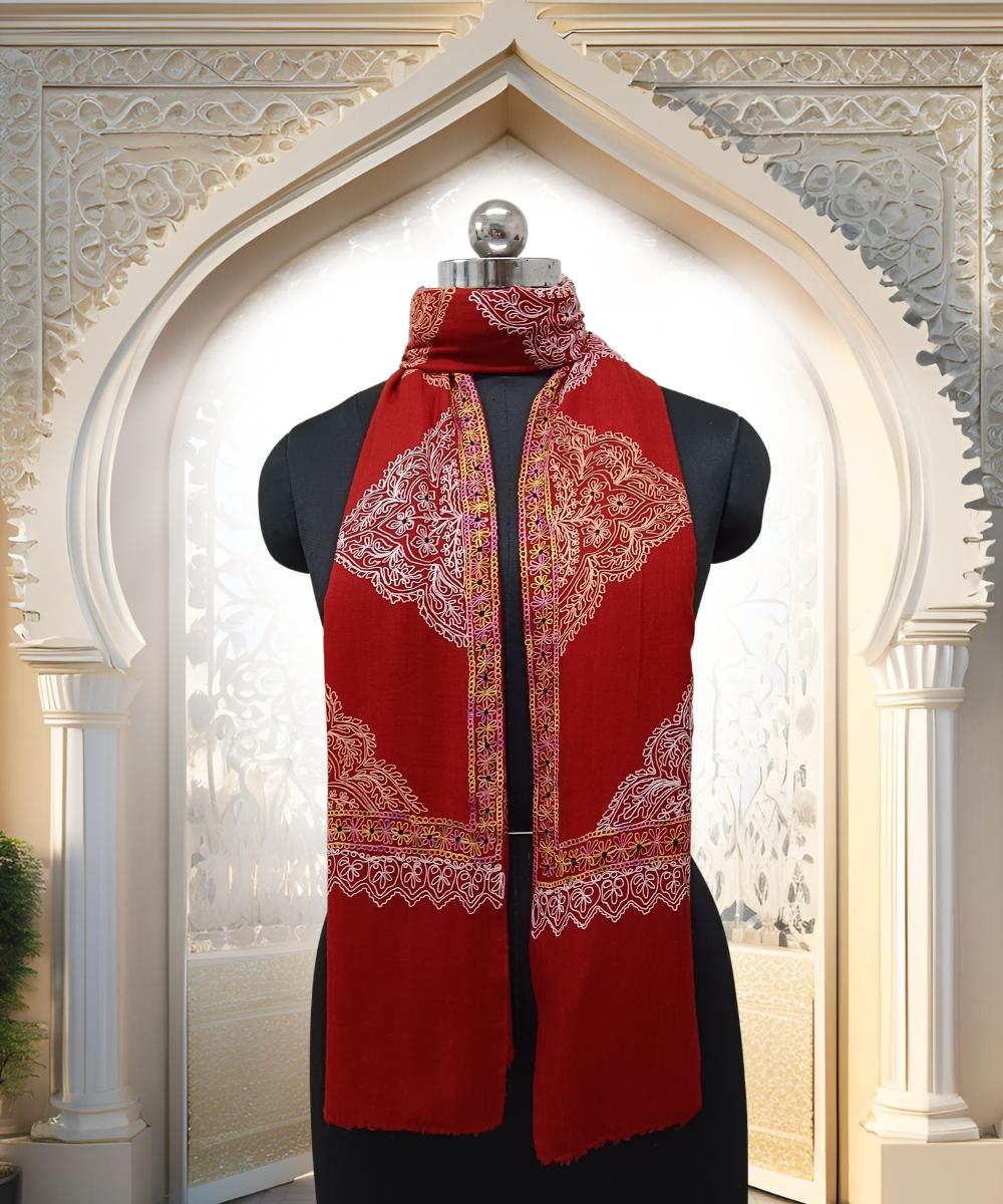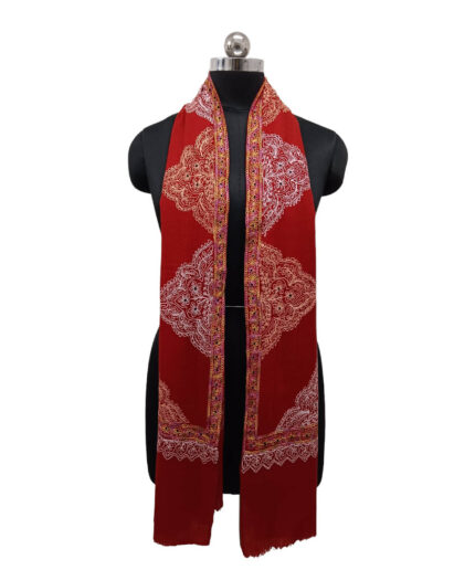 Add a touch of unique charm to your wardrobe with the Albasir Rust Pashmina Stole, a stunning piece crafted in an elegant rust color. This beautiful stole features intricate Aari embroidery along the designer border, showcasing fine craftsmanship and attention to detail. Woven from high-quality handloom pashmina fabric, it offers a rich, soft, and luxurious feel that drapes gracefully over any attire. The warm rust hue adds a bold yet sophisticated flair, making it a versatile accessory for various occasions. Whether paired with ethnic wear or modern outfits, this stole from Albasir blends tradition with contemporary elegance effortlessly. Make a statement of refined style and comfort with this timeless and graceful pashmina stole.