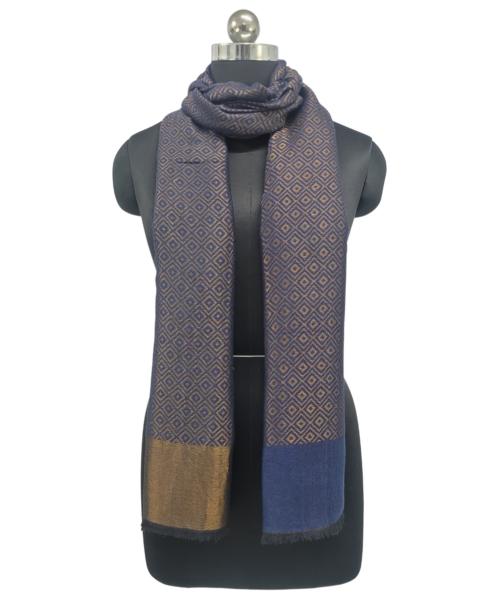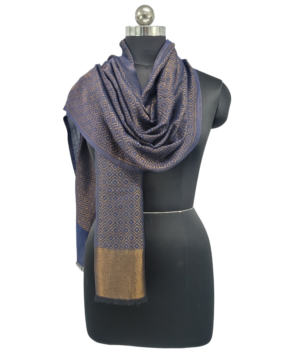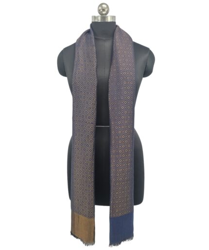 Add a touch of luxury to your wardrobe with the Albasir Zari Reversible Stole, featuring an elegant blend of rich blue and golden tones. Meticulously woven using intricate zari work, this stunning stole showcases a reversible jaal pattern that offers two stylish looks in one. Crafted from the finest handloom Pashmina, it delivers unmatched softness, warmth, and a graceful drape—perfect for the cooler seasons. Its shimmering zari threads add regal charm, making it ideal for both traditional and contemporary ensembles. Whether worn casually or styled for festive occasions, this versatile stole enhances any outfit with effortless elegance. A timeless accessory that reflects fine craftsmanship and cultural heritage, perfect for those who appreciate sophistication and style in every detail.