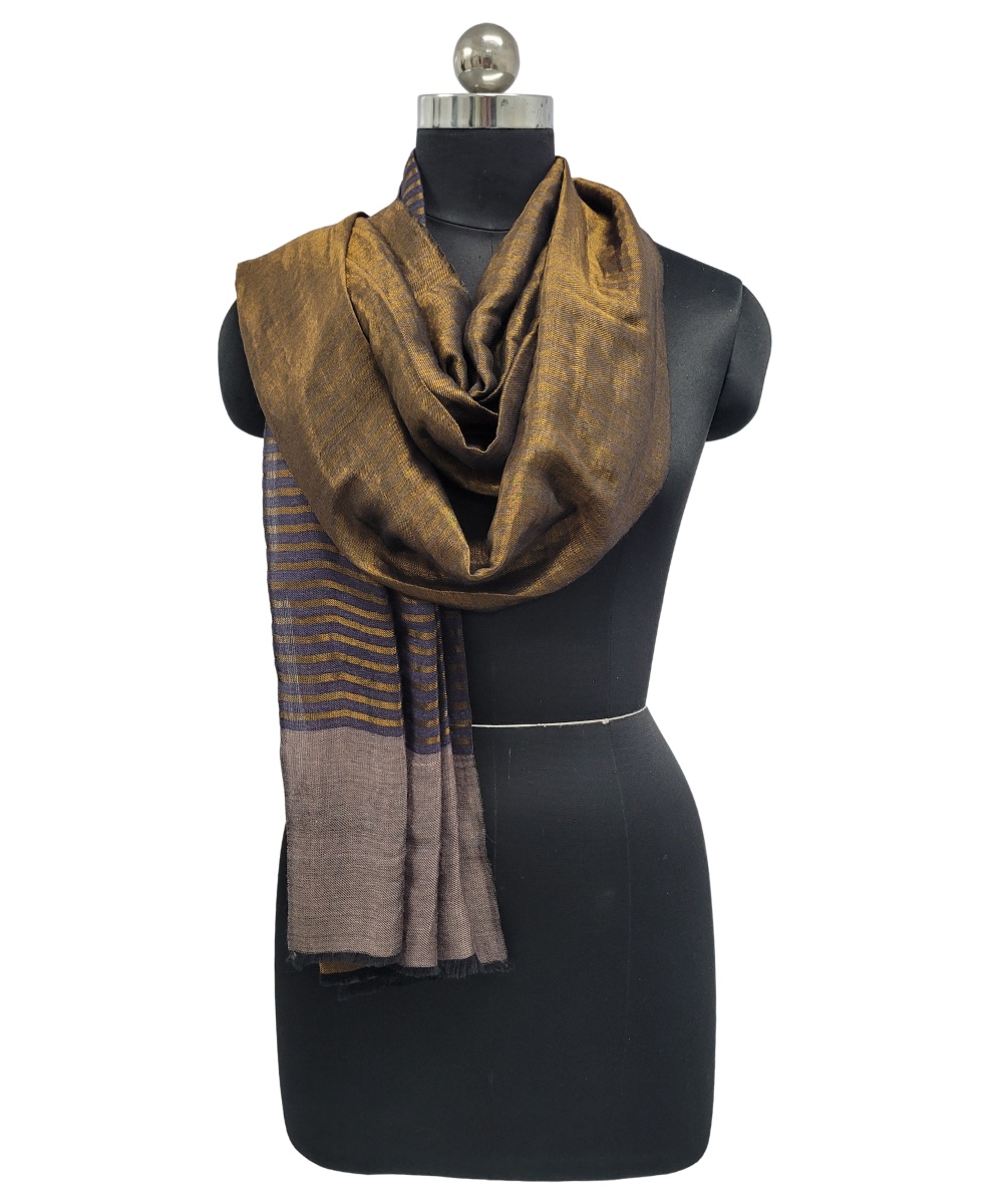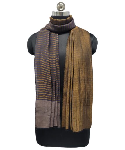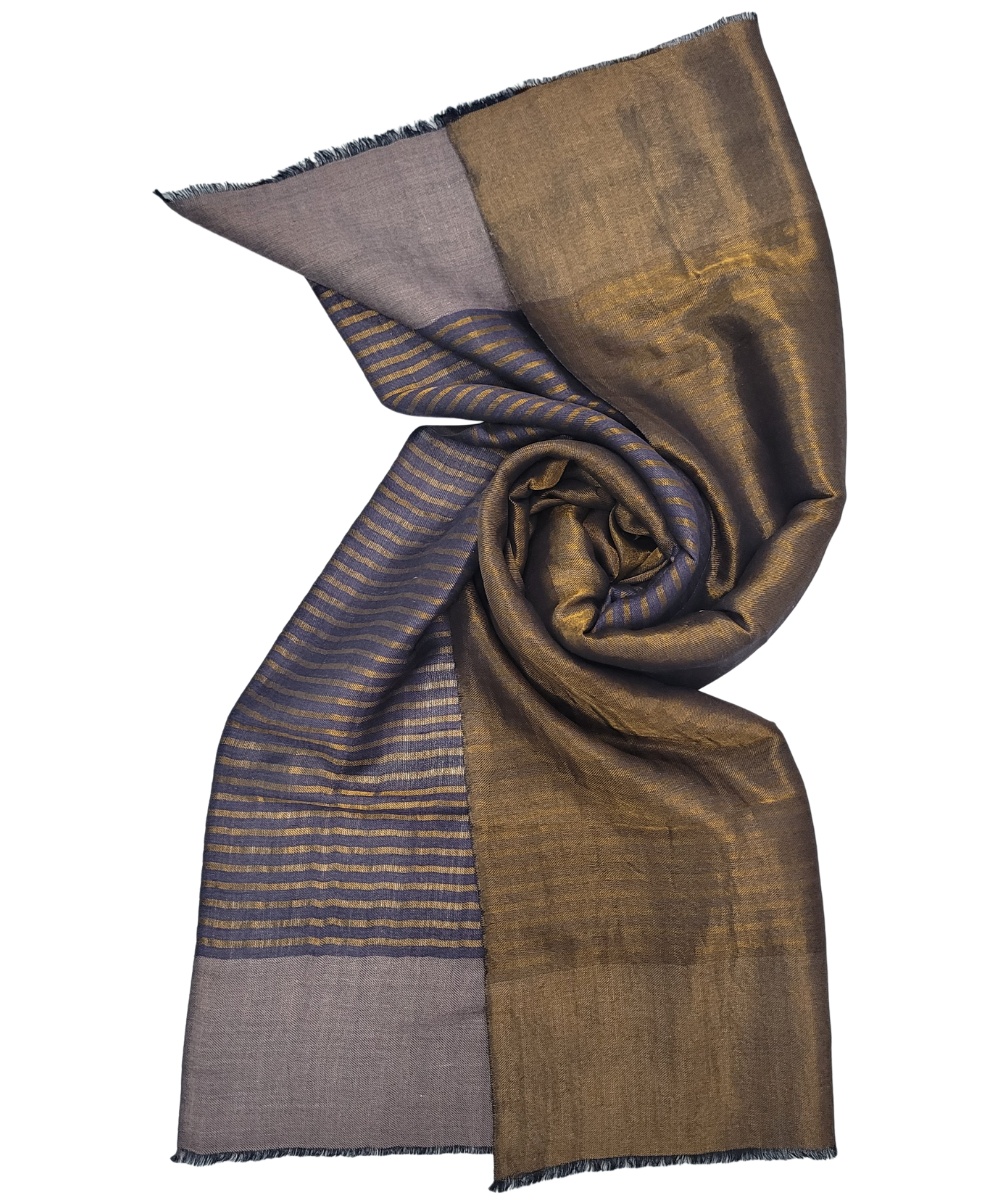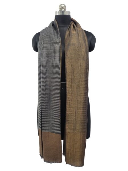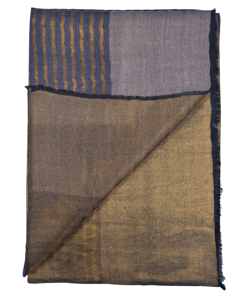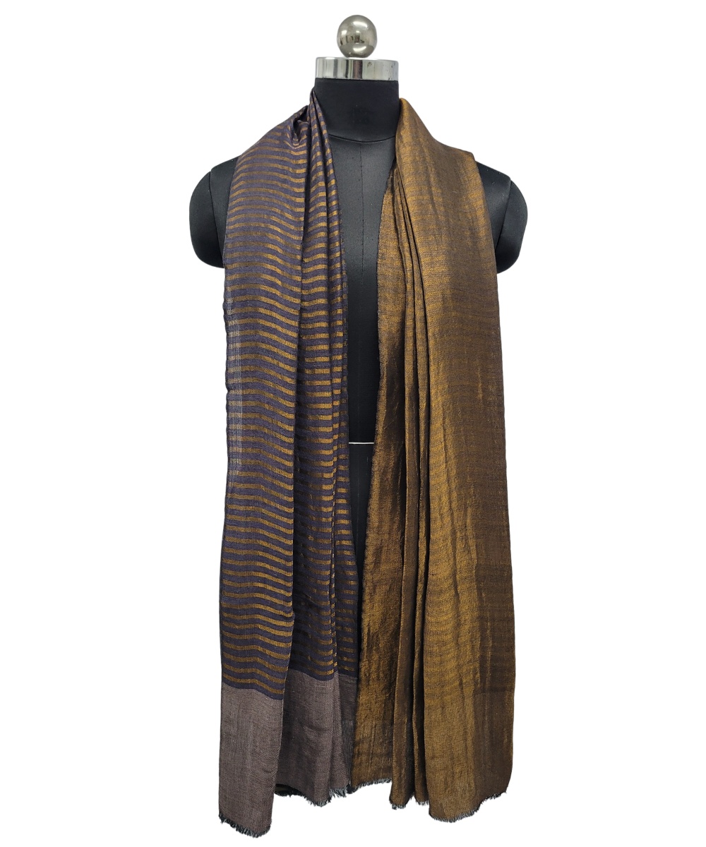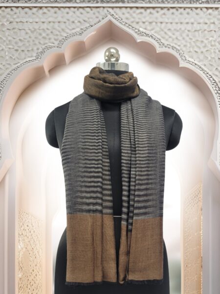 Step into timeless elegance with Albasir’s Reversible Zari Pashmina Stole, beautifully crafted in a rich combination of blue and golden tones. This classic stole features intricate Zari weave work that brings out an authentic, regal look, showcasing traditional craftsmanship at its finest. The delicate striped pattern, paired with a fully reversible design, adds depth and versatility—offering two refined styles in one luxurious accessory. Expertly woven from authentic handloom Pashmina fabric, it ensures unmatched softness, warmth, and a lightweight feel perfect for year-round wear. Whether draped over festive attire or paired with modern outfits, this stole adds a graceful finish to any ensemble. A must-have piece for those who value heritage, style, and refined comfort in equal measure.