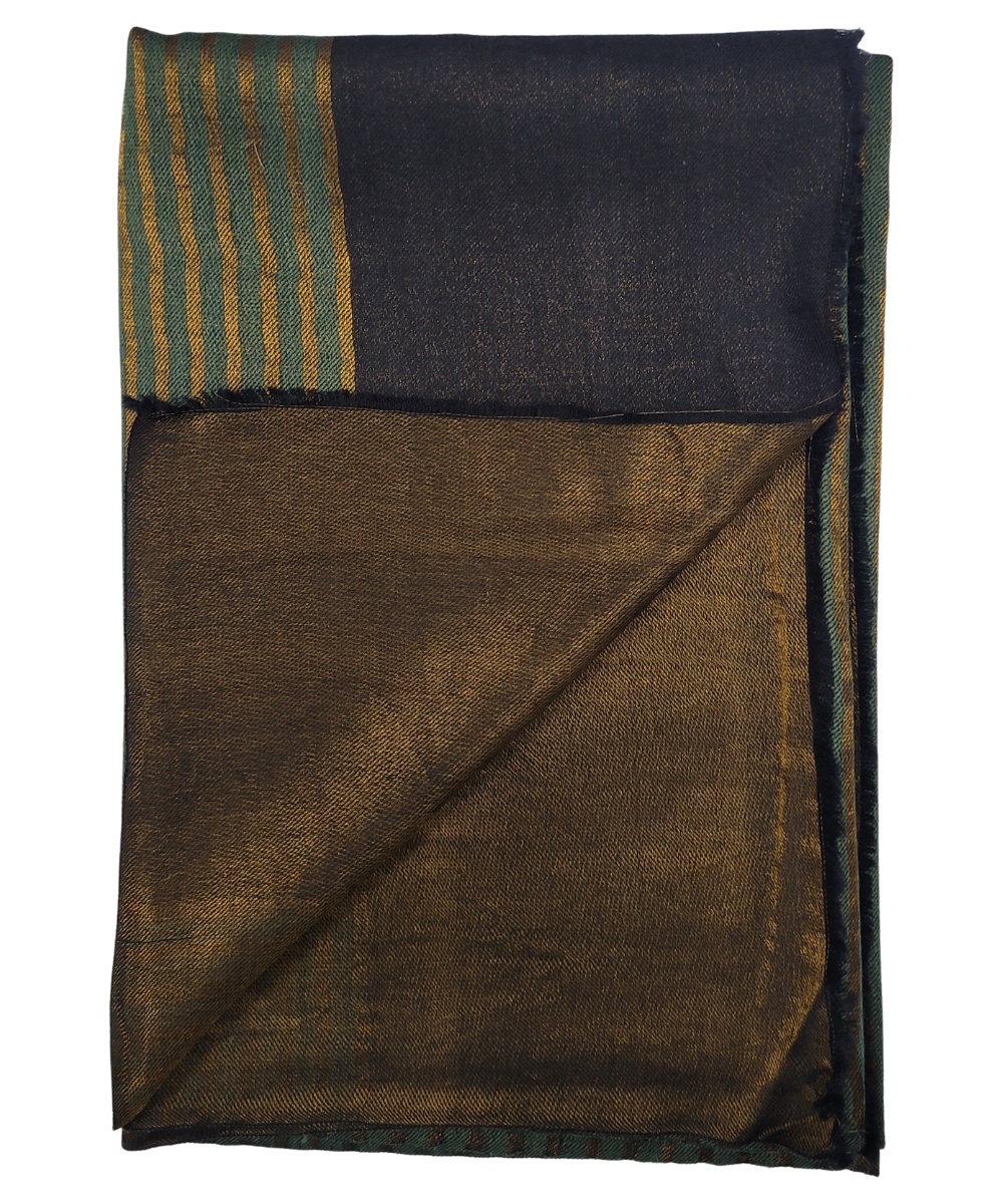 Make a graceful style statement with Albasir’s Zari Reversible Pashmina Stole, elegantly crafted in a rich blend of green and golden tones. This classic stole features intricate Zari weave work that reflects artistic charm and traditional craftsmanship. The delicate striped pattern, paired with a fully reversible design, offers two refined looks in one versatile accessory—perfect for elevating both festive and everyday ensembles. Crafted from premium-quality handloom Pashmina fabric, it ensures luxurious softness, lightweight warmth, and a graceful drape that feels exquisite against the skin. Whether you’re dressing up for a special occasion or adding elegance to a casual outfit, this stole seamlessly blends cultural richness with timeless style. A must-have piece that brings heritage to life through fashion.