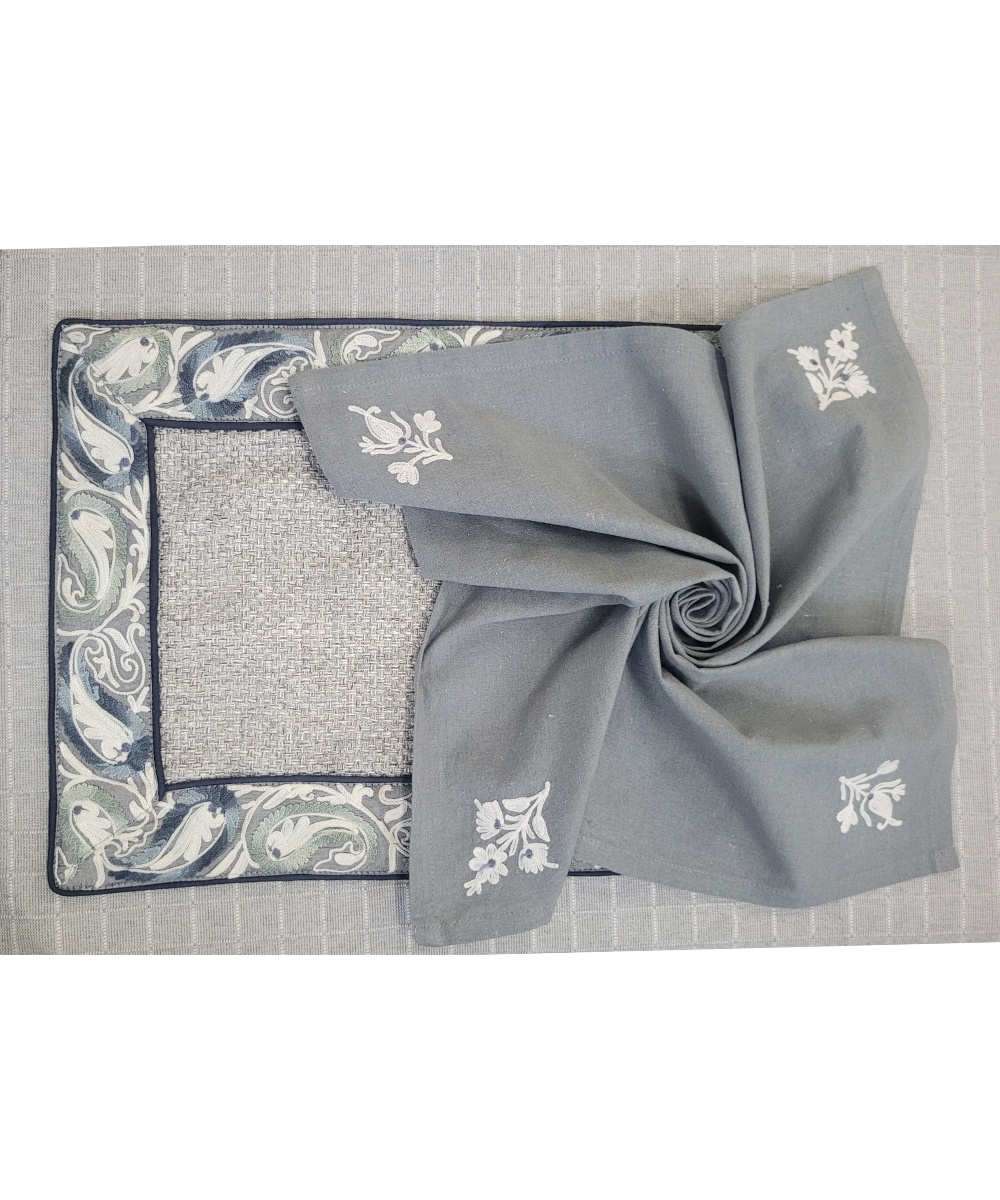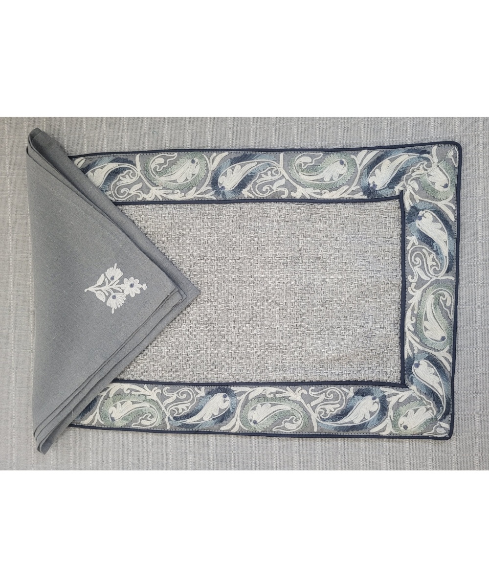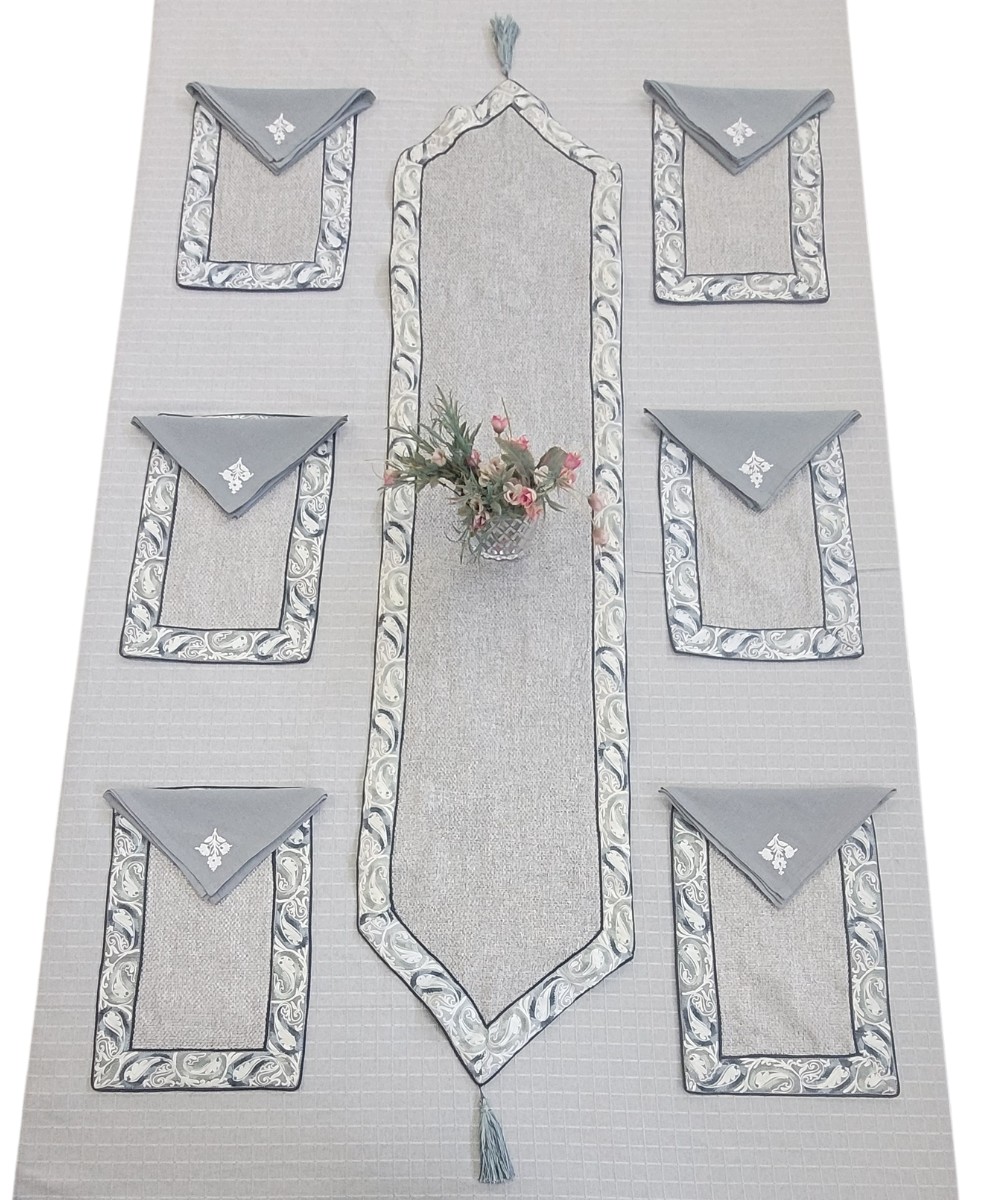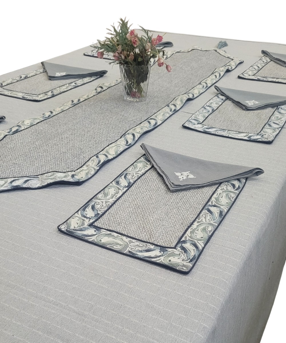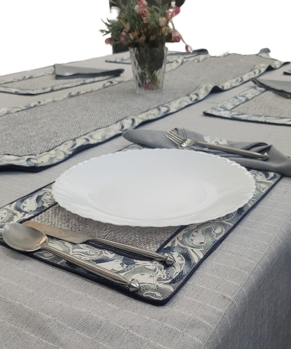 Presenting our exquisite collection of designer table mats sets, a celebration of opulence and craftsmanship. Crafted from an array of fabrics, including silk, velvet, cotton, and more, these table mats epitomize luxury and elegance. Our master designers, renowned for their creative prowess, have meticulously crafted an array of designs that span the spectrum from traditional motifs to floral patterns, geometric arrangements, border motifs, stripes, khadi textures, kalamkari prints, checks, and a myriad of other captivating styles. Each design is brought to life by our talented artisans, whose expertise in ari embroidery, zari detailing, and more, imbues every piece with unparalleled finesse and artistry. Every table mat is meticulously conceived, with careful consideration given to color and pattern combinations, resulting in pieces that are truly unique and unmatched in their beauty. The creation of each table mat is a labor of love, spanning an entire month of meticulous craftsmanship, resulting in true works of art that elevate any kitchen with a modern and stylish flair. Indulge in the luxury of our designer table mats sets and add a touch of sophistication to your dining experience.