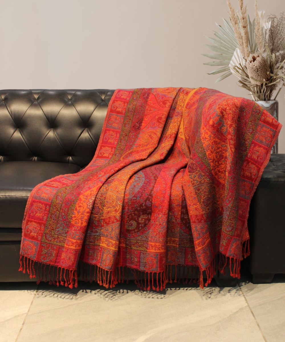 Albasir, we are committed to bringing you the finest heritage textiles, blending tradition with modern elegance.A Kani throw blanket is a luxurious, handwoven textile that originates from Kashmir, known for its intricate patterns and superior craftsmanship. Traditionally made using the finest natural fibers, such as pashmina wool, it is an embodiment of both elegance and comfort. The Kani throw blanket is often created using the Kani weaving technique, which involves a complex process of handloom weaving, with each piece being carefully crafted by skilled artisans over an extended period of time.The designs of Kani throw blankets are typically inspired by nature, including floral motifs, paisleys, and geometric patterns. These patterns are carefully handwoven into the fabric, creating a beautiful and detailed texture. The rich colors and intricate detailing often feature shades like deep reds, golds, blues, and greens, which are achieved by dyeing the wool using natural methods.The size of a Kani throw blanket is often designed to provide both warmth and style, making it perfect for draping over sofas, chairs, or beds. The softness of the wool ensures comfort, while the weight of the blanket provides an ideal balance for cozying up during cooler months.In addition to being functional, a Kani throw is often considered a work of art due to the precision involved in its creation. Modern Kani throws are sometimes blended with other fibers like silk or cotton, offering different textures and weight for a variety of preferences. They are not only cherished for their comfort and beauty but are also highly valued as heirloom pieces that can be passed down through generations.A Kani throw blanket adds a touch of cultural heritage and timeless elegance to any home, seamlessly blending traditional craftsmanship with contemporary home decor.