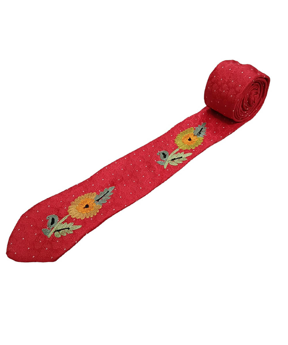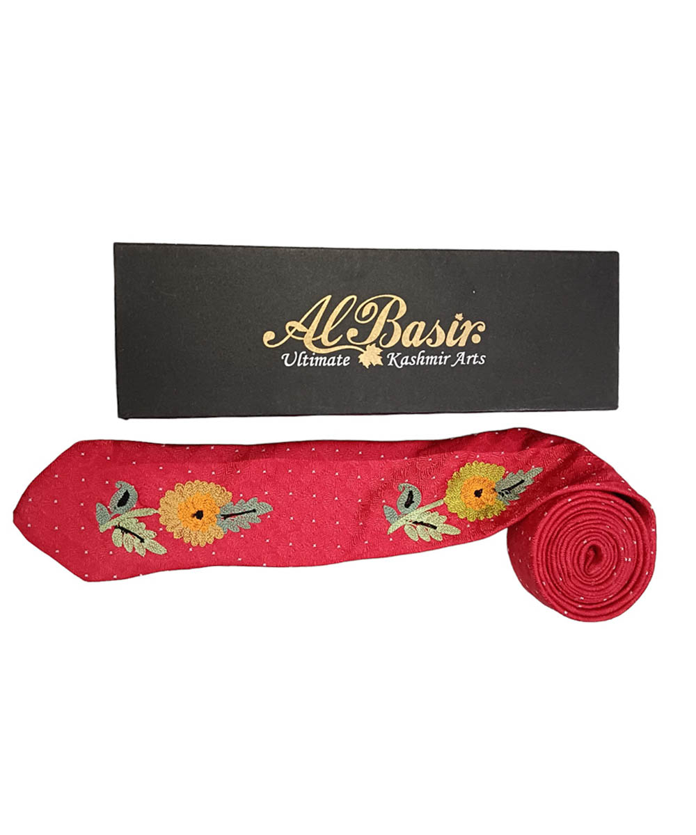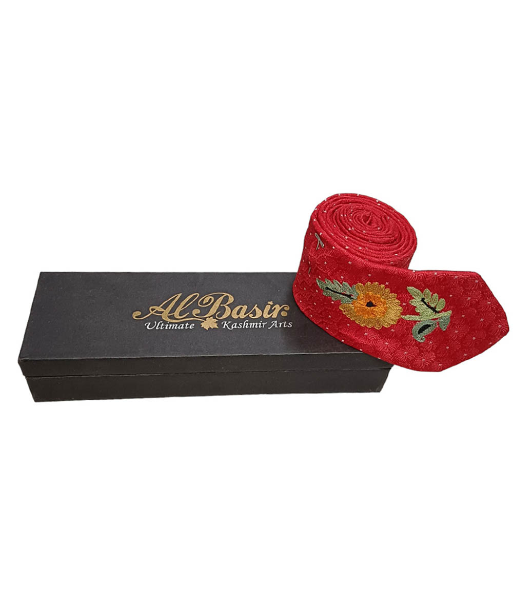 Albasir’s Elegant Red Satin Silk Tie is a striking accessory that blends traditional craftsmanship with modern elegance. Made from high-quality satin silk, it offers a smooth, luxurious feel and a rich sheen that enhances any formal look. The tie is adorned with intricate Kashmiri Aari embroidery, featuring a refined Boti design that adds a touch of cultural charm and sophistication. Its unique motif work elevates its visual appeal, making it a standout piece for weddings, formal gatherings, or professional events. Whether paired with a suit, blazer, or traditional attire, this tie adds depth, detail, and a sense of heritage to your ensemble—perfect for those who value timeless style with a handcrafted touch.