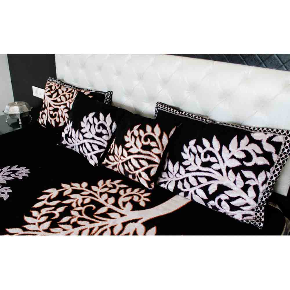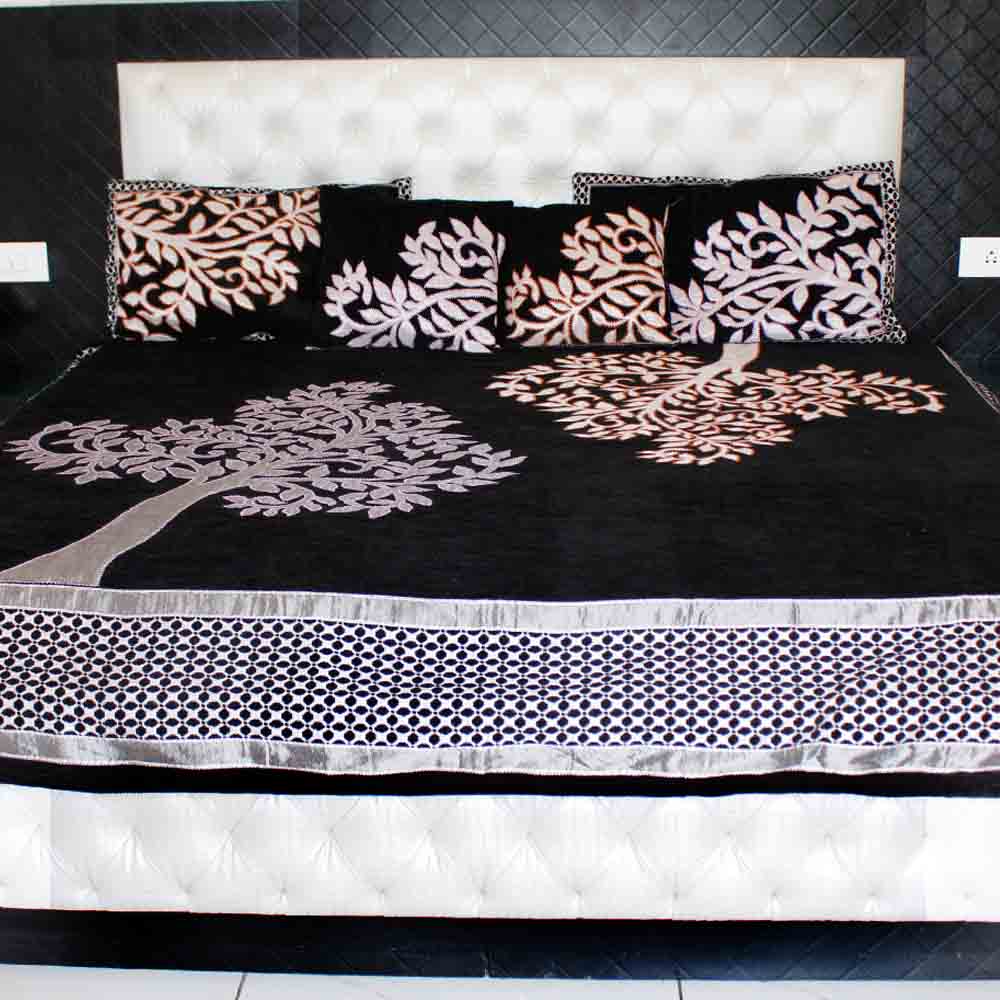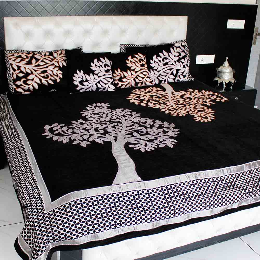 Indulge in luxury and refinement with our exclusive collection of designer bedspreads, meticulously handcrafted by the skilled artisans of Kashmir. Embodying a fusion of tradition and innovation, our bedspreads feature an eclectic array of designs, ranging from contemporary patterns to timeless motifs, from delicate floral arrangements to bold geometric shapes, and beyond. Crafted from a rich selection of fabrics including sumptuous silk, soft cotton, durable dosuti, plush velvet, opulent brocade, and cozy wool, each bedspread promises not only unparalleled comfort but also an exquisite aesthetic. Every piece in our collection is a testament to the artisan’s mastery, meticulously adorned with intricate details and vibrant colors that breathe life into every stitch. From the mesmerizing Machine work, aari work to the delicate from the shimmering zari embellishments, each element is executed with precision and care, resulting in a harmonious symphony of texture and hue. Transform your bedroom into a sanctuary of elegance and charm with these captivating bedspreads, each one showcasing exceptional craftsmanship and adding a touch of sophistication to your living space. Whether you seek to infuse your room with warmth and coziness or elevate its aesthetic appeal with a touch of opulence, our designer bedspreads are sure to enchant and inspire, inviting you to embrace the timeless allure of Kashmiri artistry.
