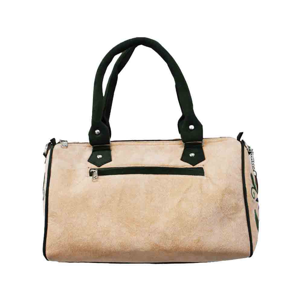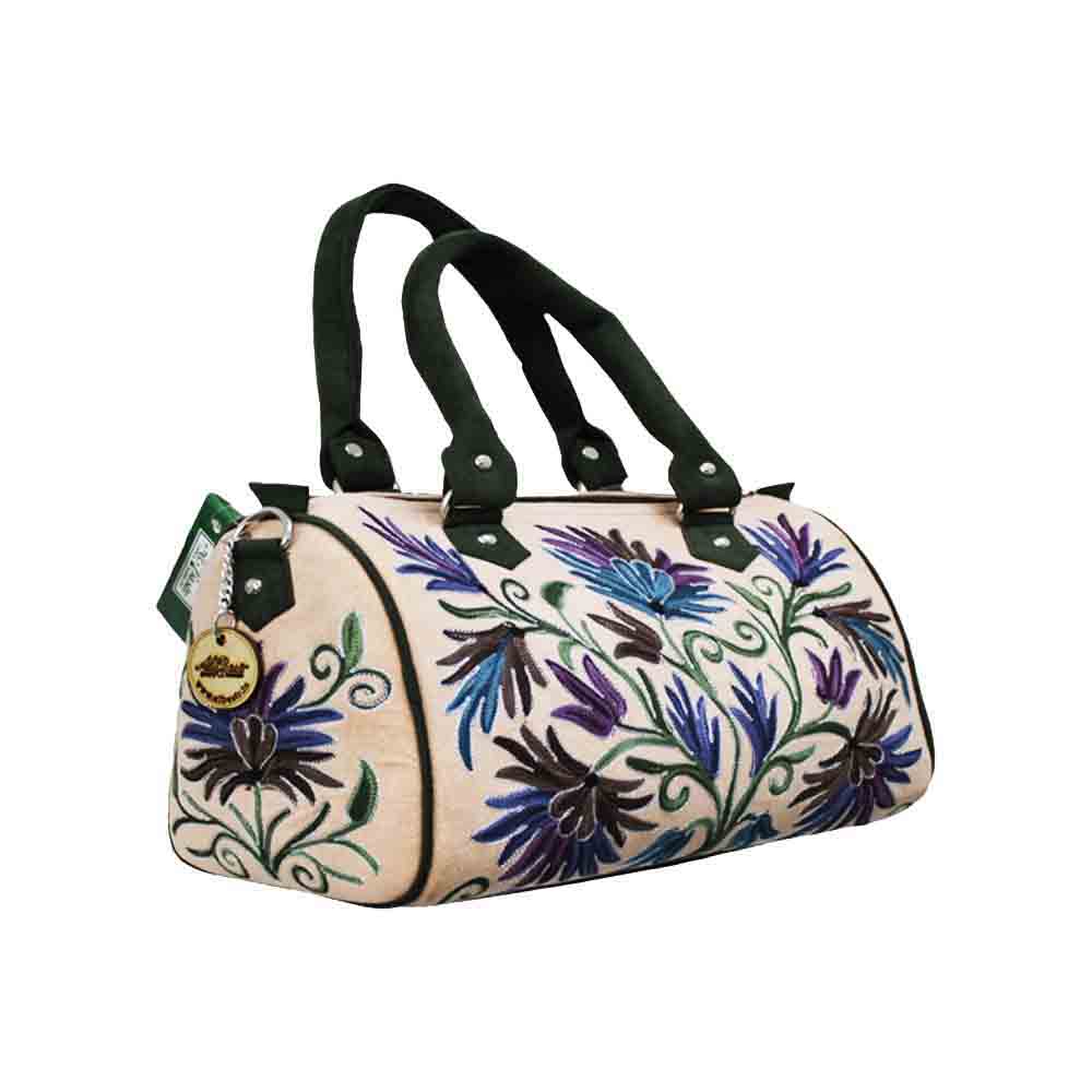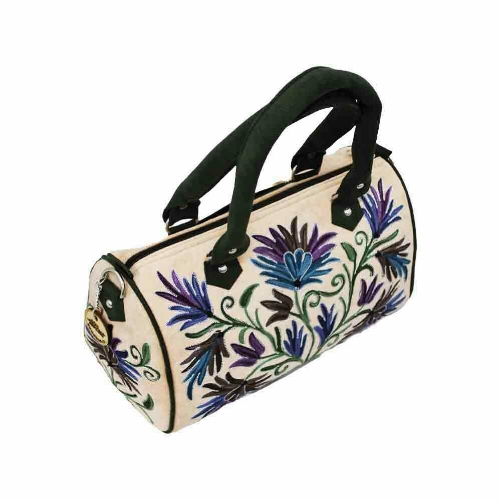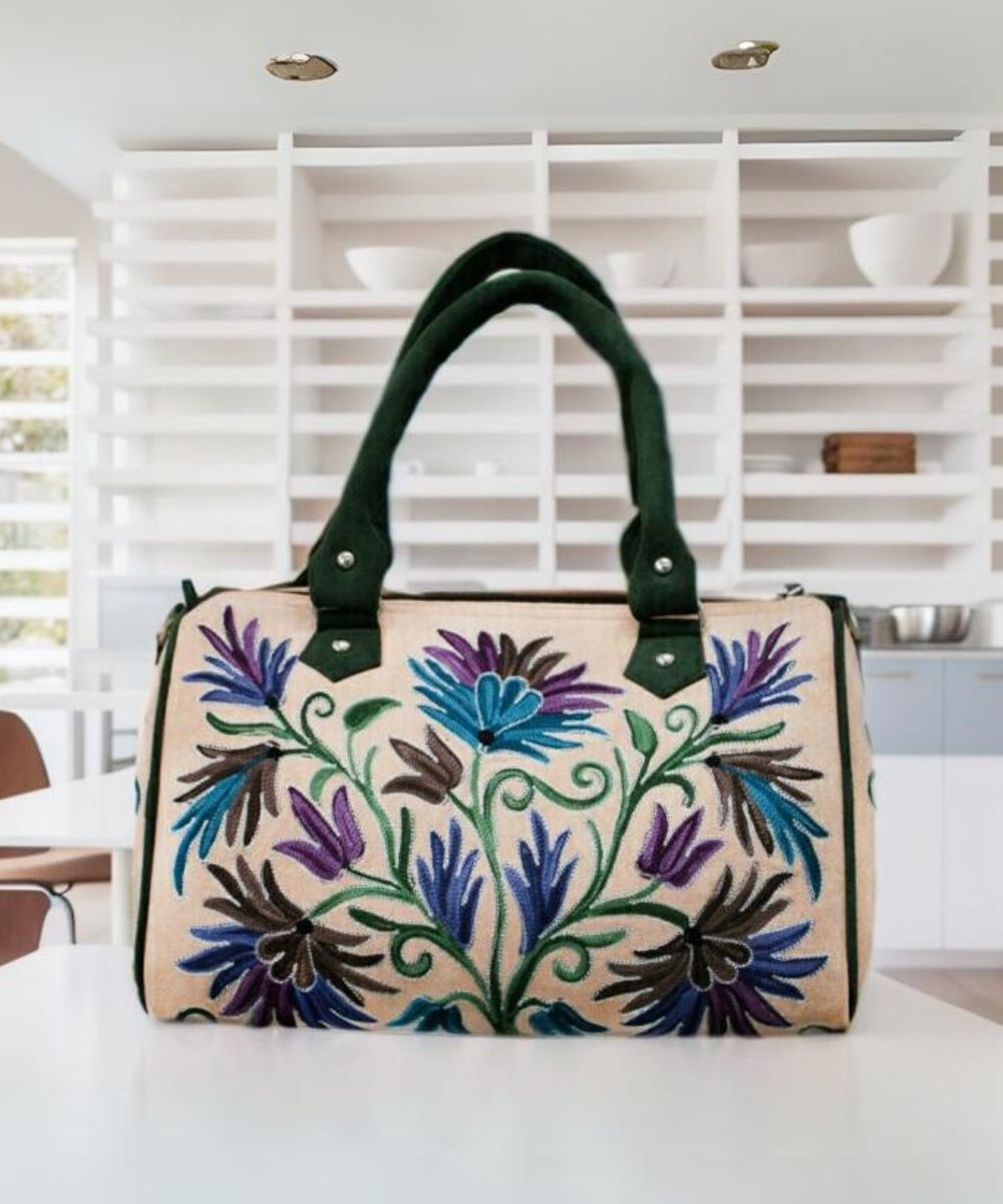 Elevate your accessory collection with Albasir’s Velvet Handbag in a sophisticated peach shade, perfect for adding a modern yet timeless touch to any outfit. Crafted from luxurious velvet fabric, this bag boasts a rich texture that feels as elegant as it looks. The delicate Aari embroidery work enhances its artistic charm, showcasing intricate craftsmanship that reflects traditional Kashmiri artistry. Featuring a classic Jaal design, the handbag blends timeless appeal with contemporary style, making it a versatile choice for both casual and formal occasions. Adorned with exquisite Kashmiri crewel work, it stands out as a statement piece that marries heritage with modern fashion. Carry this velvet handbag to add richness, elegance, and a dash of cultural grace to your ensemble.