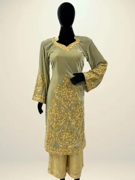 • Hand Needle Work In Jamawar Design Reflects Authentic Glance.